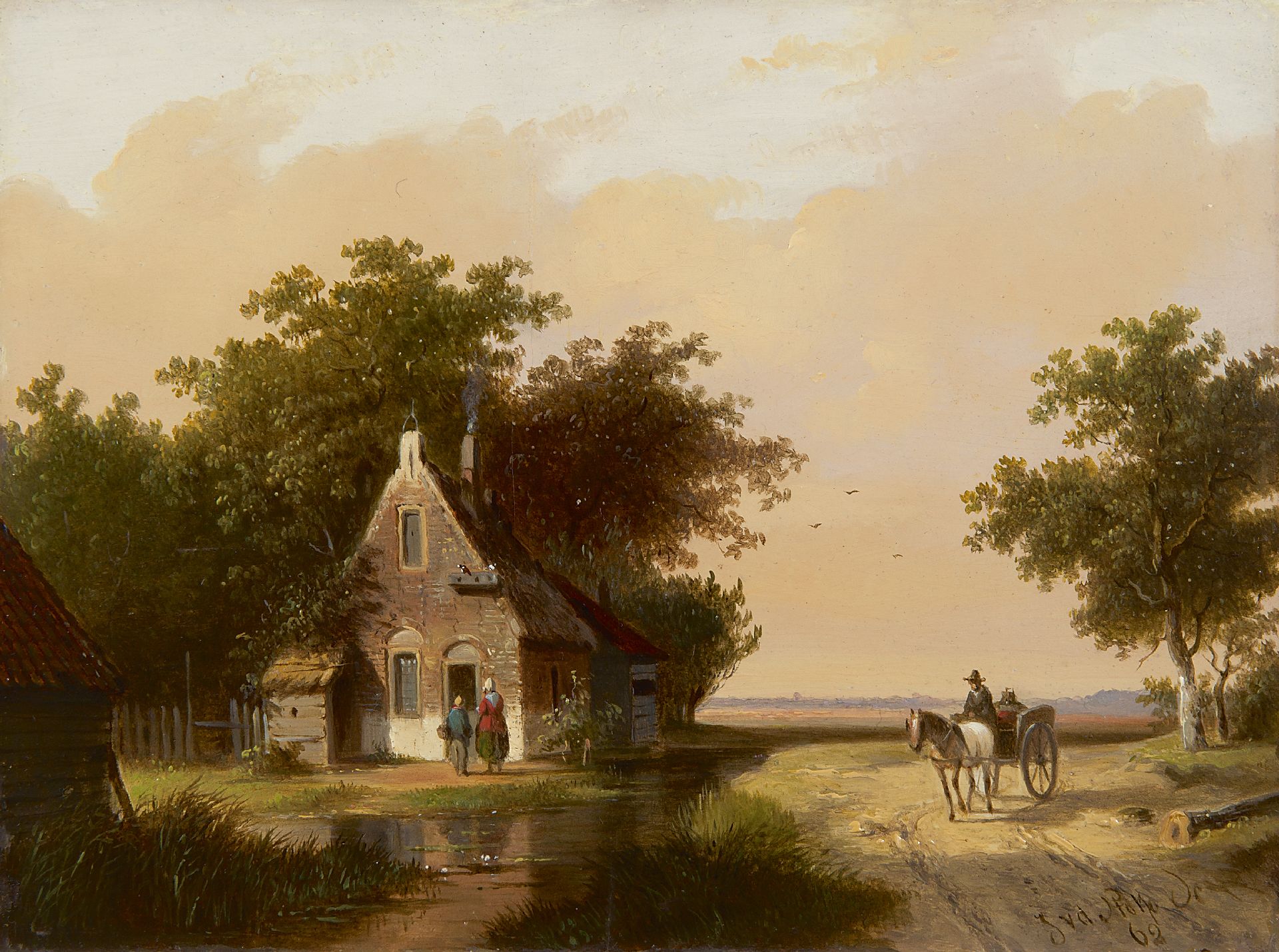 Jacobus van der Stok kunstwerk • schilderij • voorheen te koop Landschap met figuren bij een huisje