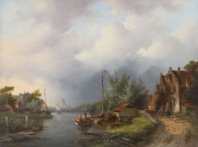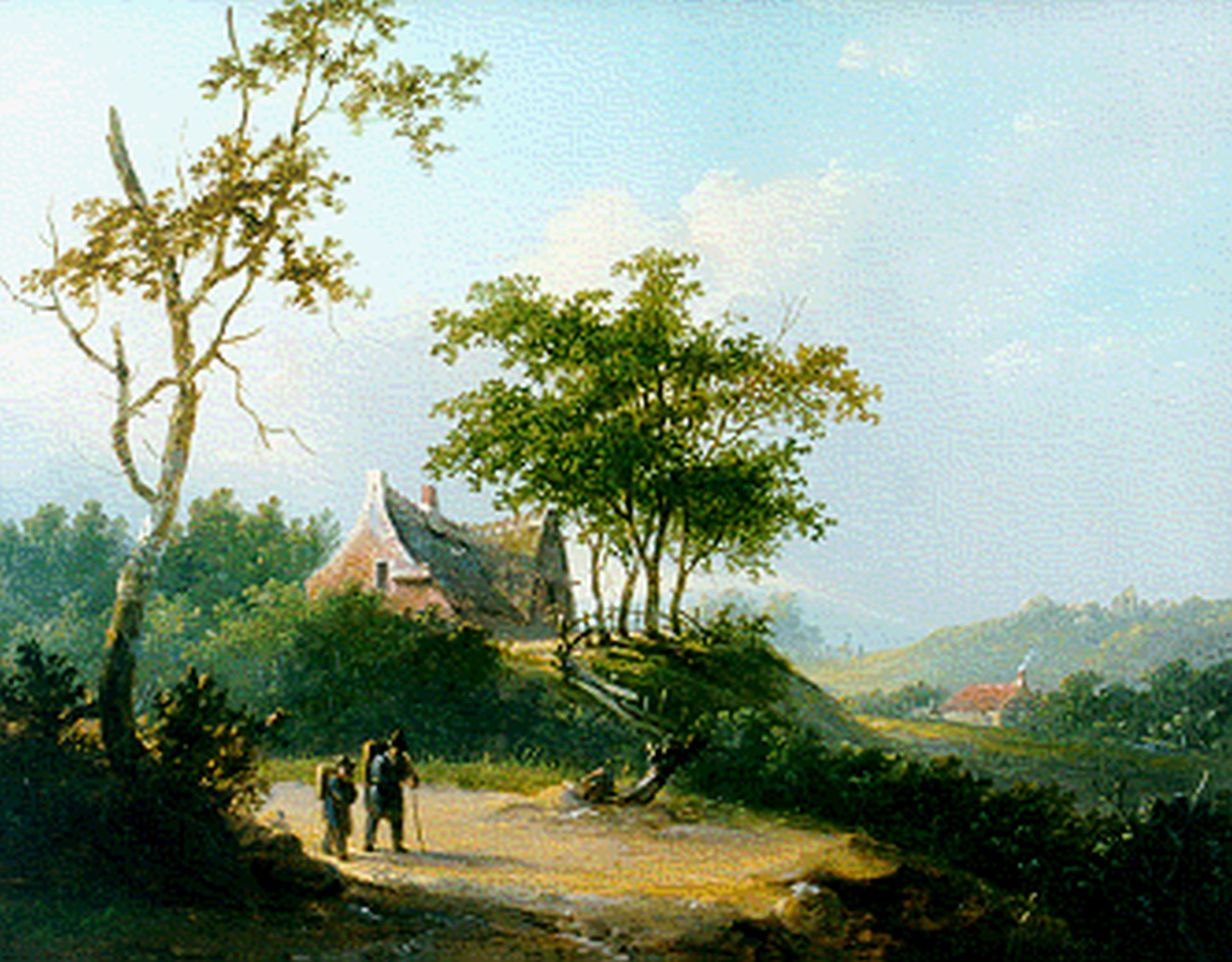 Jacobus van der Stok kunstwerk • schilderij • voorheen te koop Reizigers in panoramisch zomerlandschap