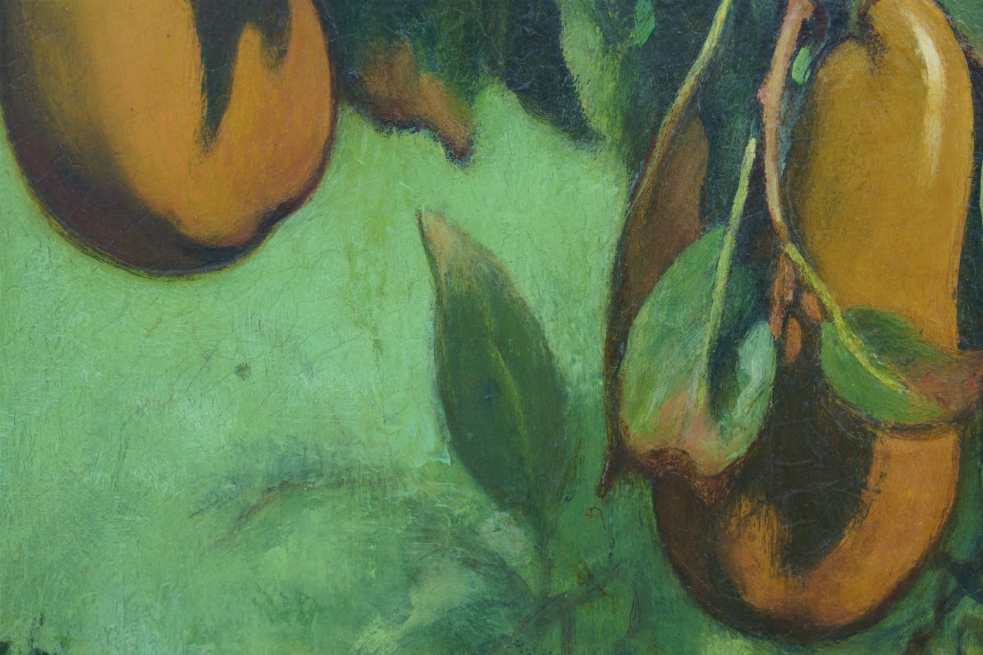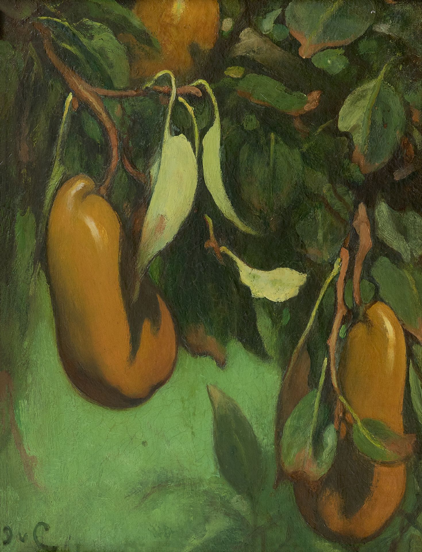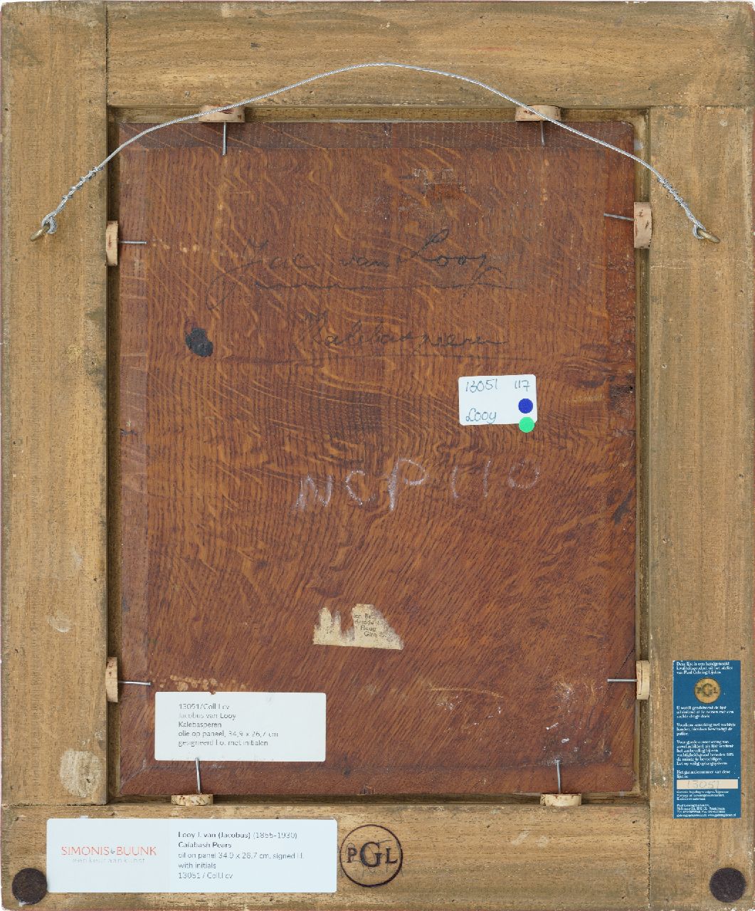 Jacobus van Looy, bekend als de schrijver van de trilogie Jaapje, Jaap en Jakob, omschreef zichzelf als ‘schilder van huis uit en schrijver door toevallige omstandigheden’. In zijn schilderijen en tekeningen onderscheidde hij zich van zijn tijdgenoten door een eigenzinnige manier van uitbeelden. Na 1901 besloot hij nooit meer te exposeren of te verkopen. ‘Kalebasperen’ schilderde hij na 1913 in de tuin van zijn huis in Haarlem. Het is onderdeel van kleine reeksen in ‘close-up’ geschilderde bloemen en vruchten die de kunstenaar overal in zijn huis ophing.