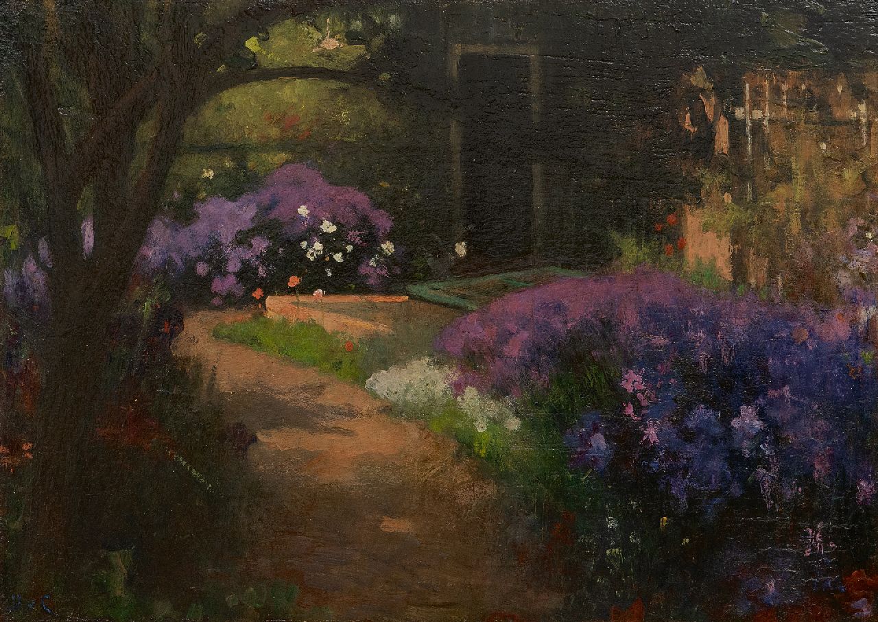 olieverf op paneel 26,8 x 37,0 cm, gesigneerd linksonder met initialen en te dateren 1907-1930
