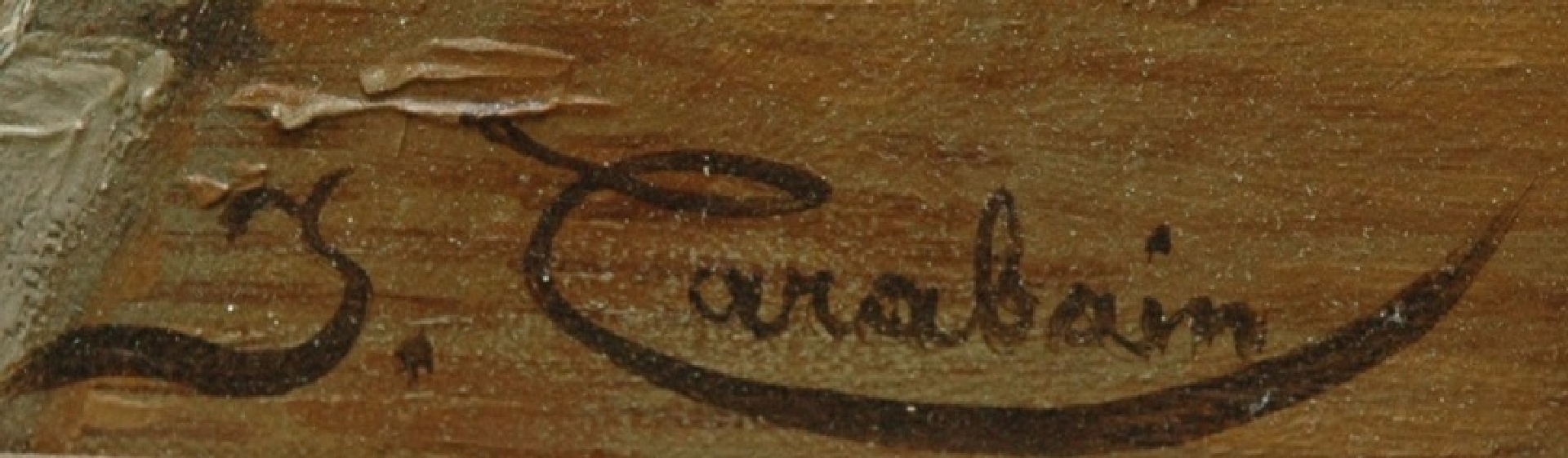De in Amsterdam geboren Jacques François Joseph Carabain schilderde romantische stads- en dorpsgezichten, landschappen en riviergezichten. Zijn opleiding kreeg hij op de tekenacademie in Amsterdam, onder anderen van de figuur- en historieschilder Valentijn Bing. Dit is terug te zien in de manier waarop hij de figuren in zijn schilderijen zorgvuldig, en met aandacht voor details uitwerkte. Carabain hield van reizen. Hij bezocht meerdere malen Italië, Frankrijk, Oostenrijk en Duitsland en schilderde ook Zuid-Franse en Italiaanse kustgezichten. Omstreeks 1880 vestigde de schilder zich in Brussel, waar hij tot zijn dood bleef wonen en werken.