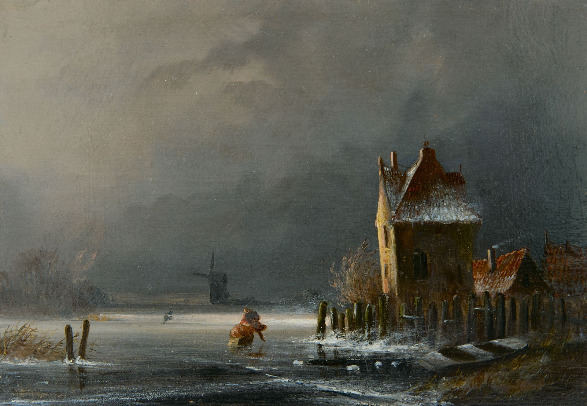 Jacques van Hellenberg Hubar kunstwerk • schilderij • voorheen te koop Winterlandschap bij naderende sneeuwstorm