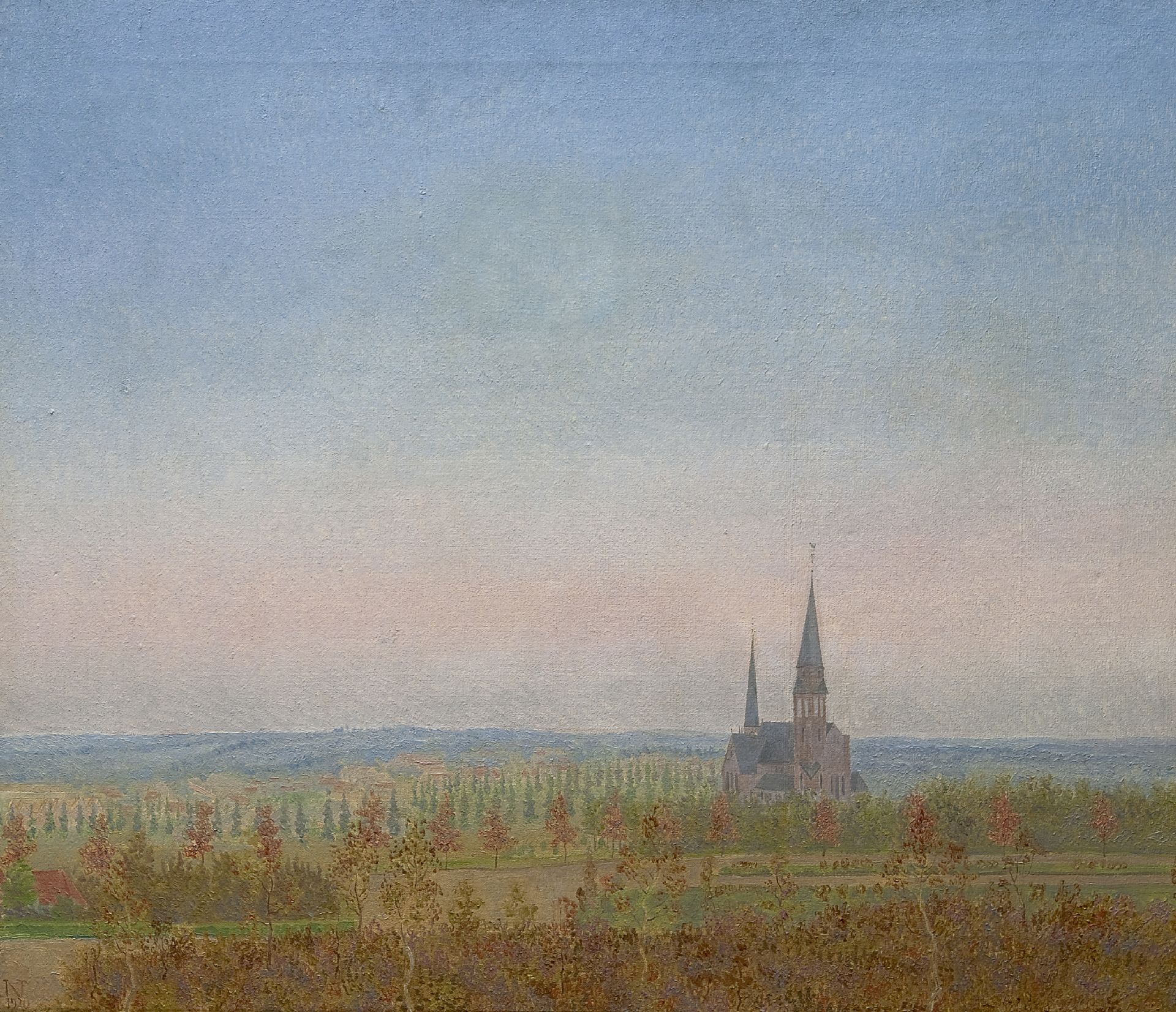 Jakob Nieweg kunstwerk • schilderij • voorheen te koop Gezicht vanaf de Amersfoortse Berg met de St. Ansfriduskerk
