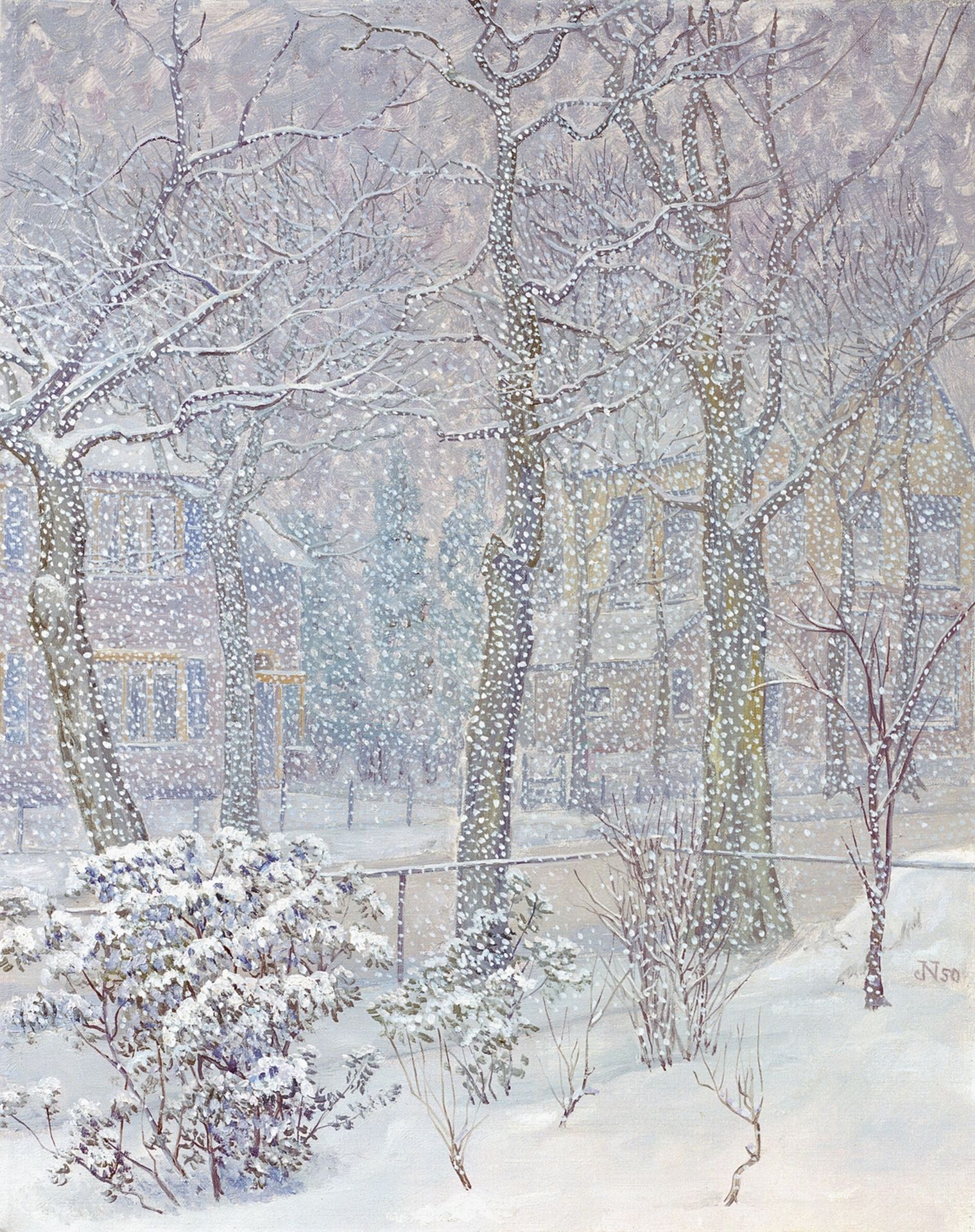 Jakob Nieweg kunstwerk • schilderij • voorheen te koop Het sneeuwt