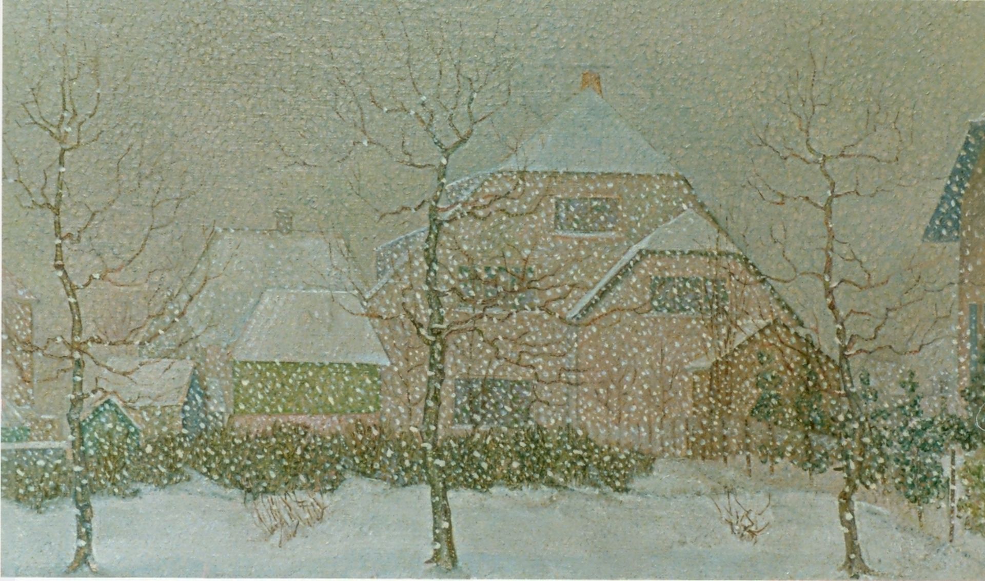 Jakob Nieweg kunstwerk • schilderij • voorheen te koop Het sneeuwt