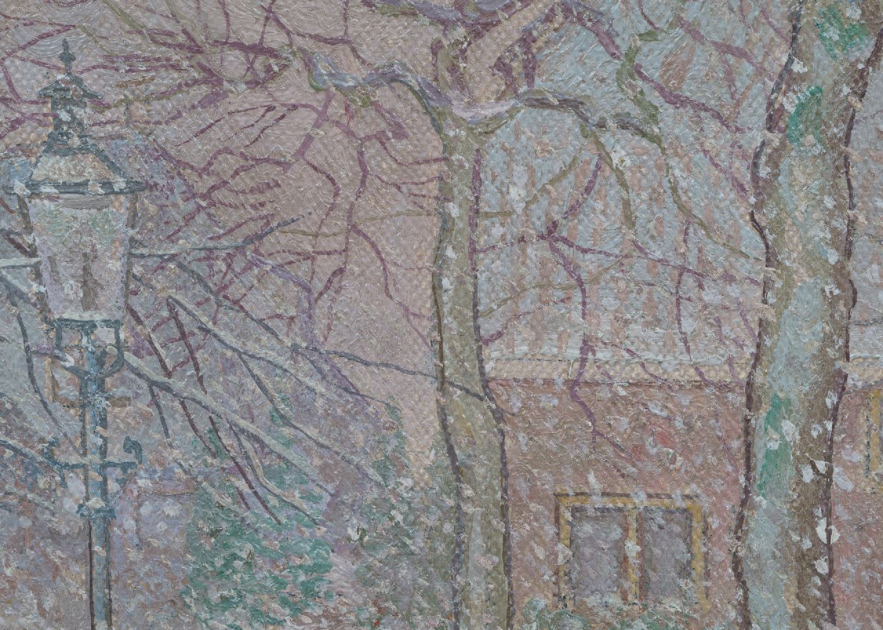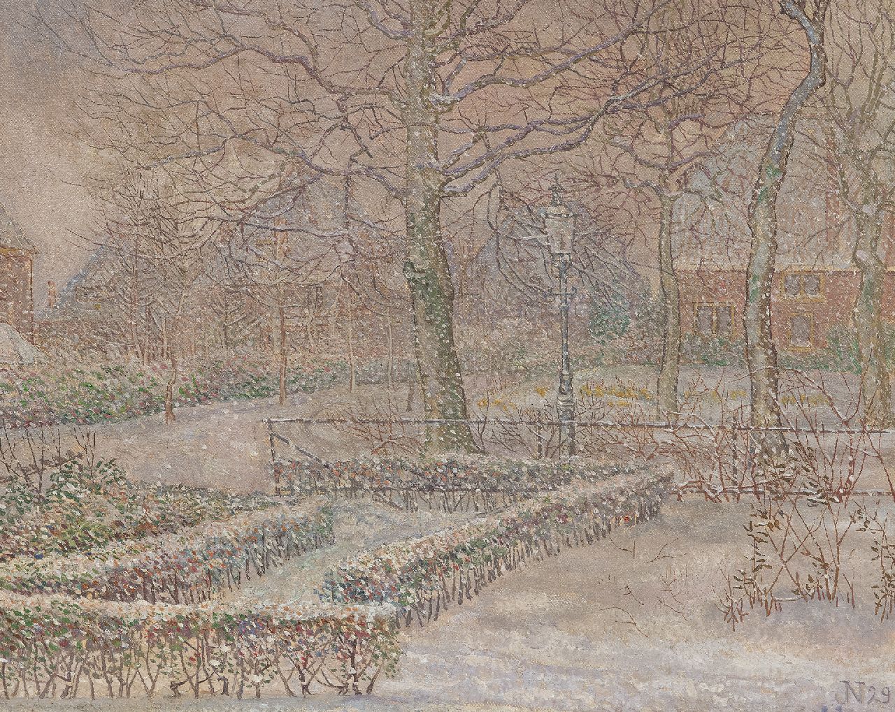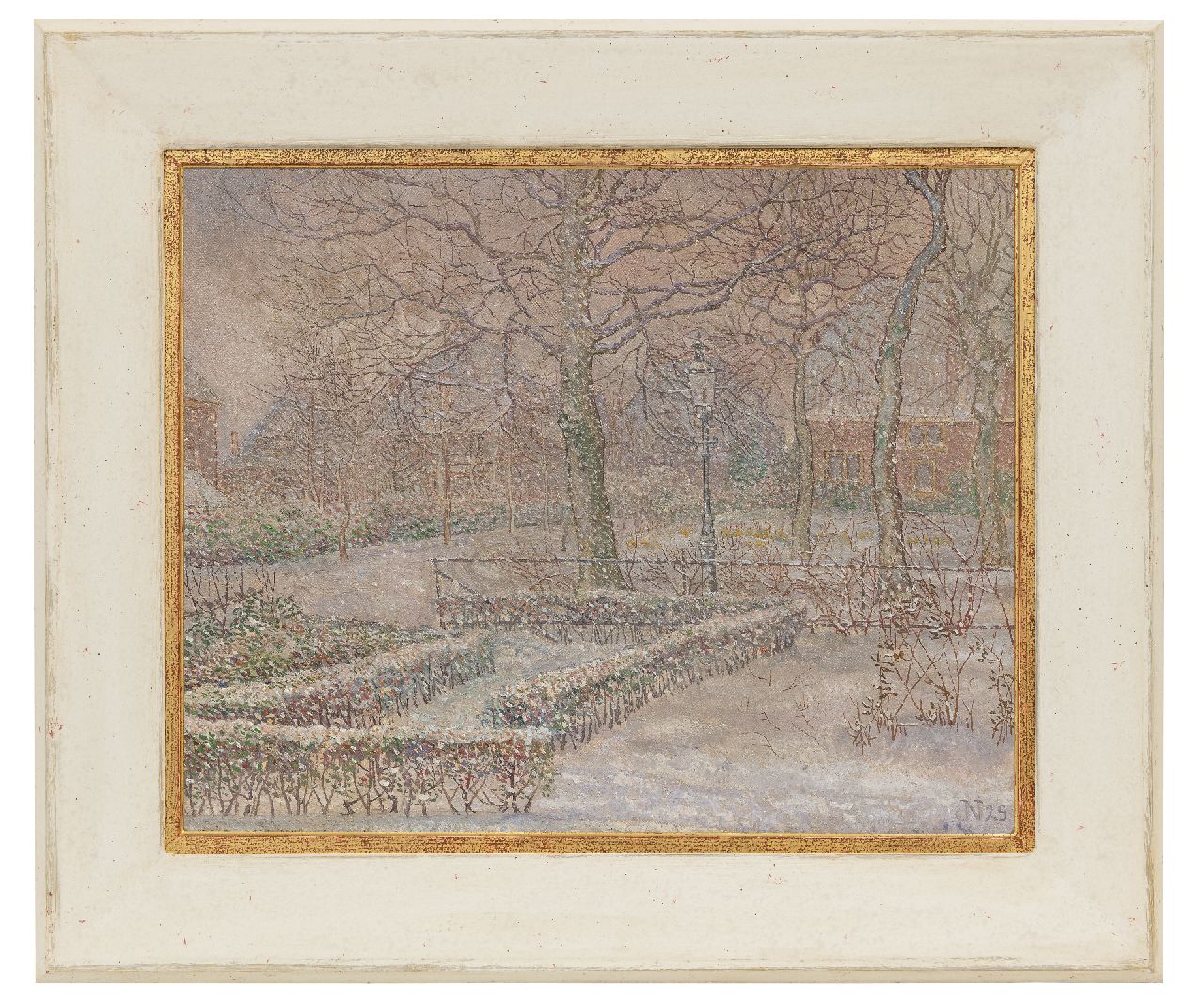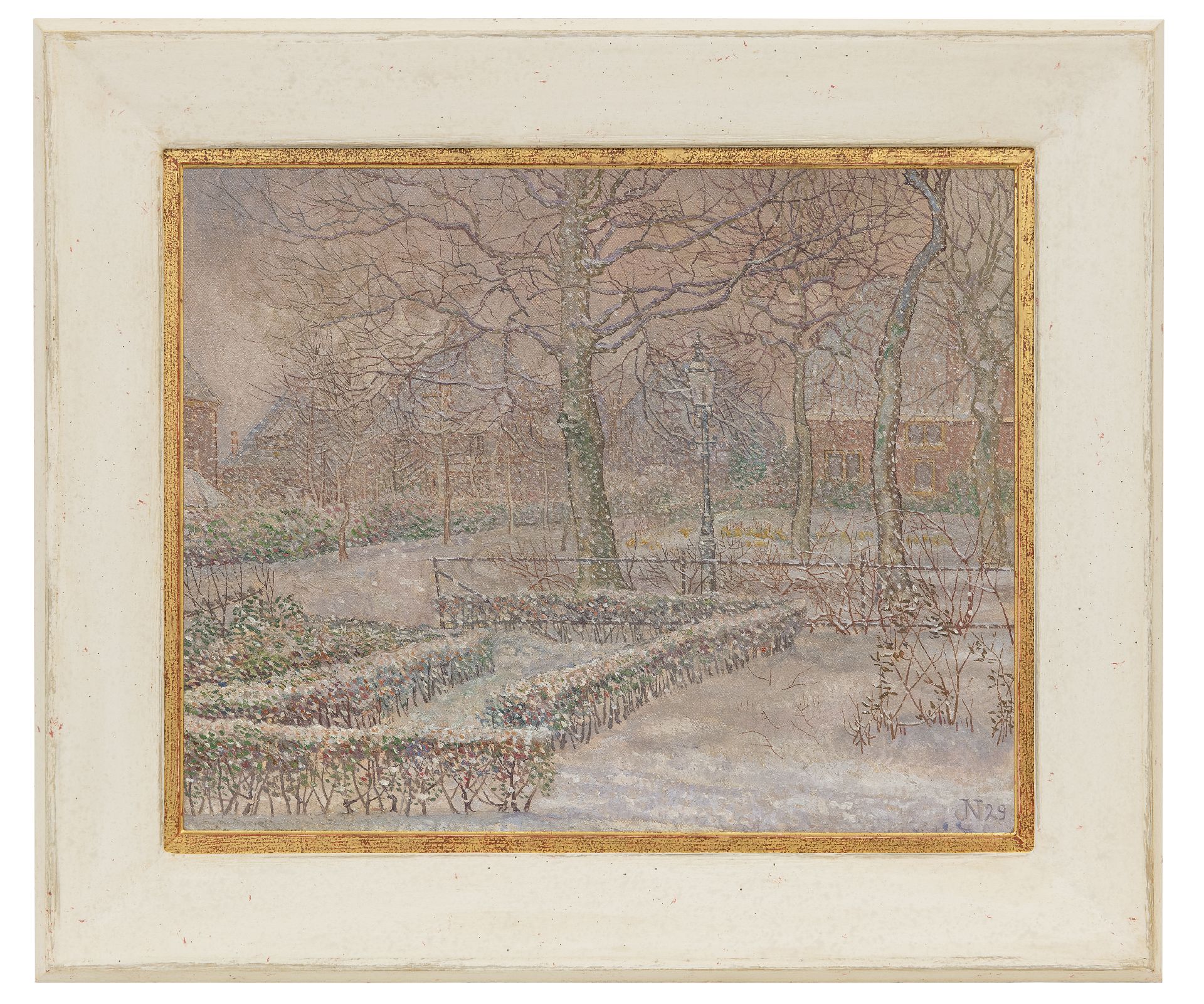 Jakob Nieweg kunstwerk • schilderij • voorheen te koop Tuin van de schilder in de sneeuw, Amersfoort