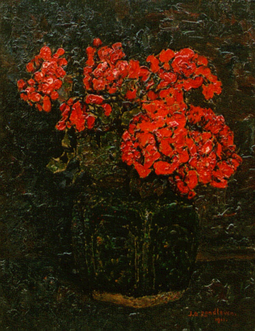 Jan Adam Zandleven kunstwerk • schilderij • voorheen te koop Chrysanten in een gemberpot