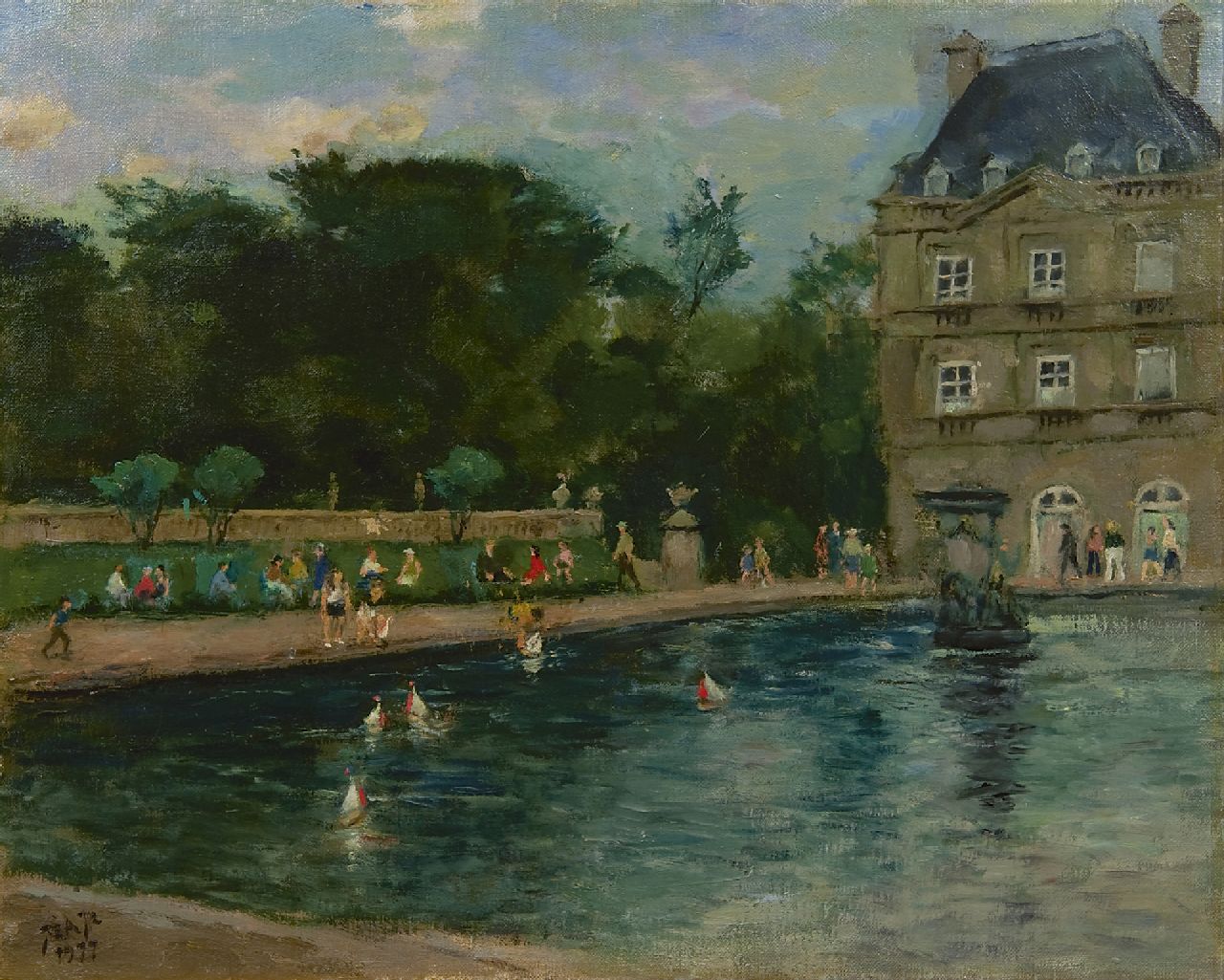 Jan Akkeringa kunstwerk • schilderij • voorheen te koop De vijver in de Jardin du Luxembourg, Parijs