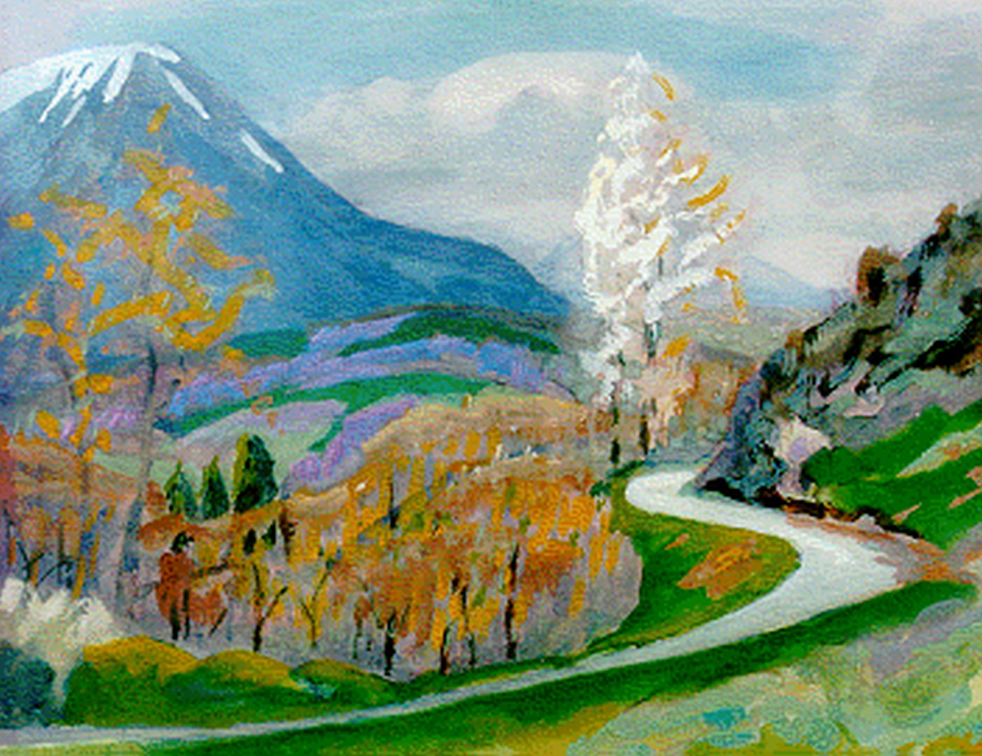 Jan Altink kunstwerk • aquarel • tekening • voorheen te koop Berglandschap