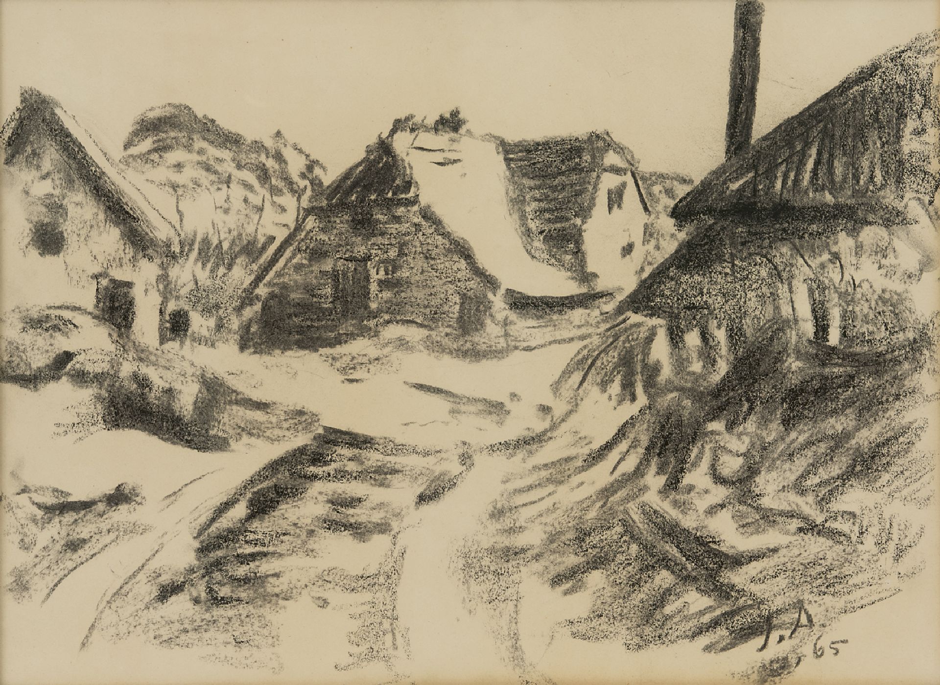houtskool op papier 36,7 x 48,8 cm, gesigneerd rechtsonder met initialen en gedateerd '65