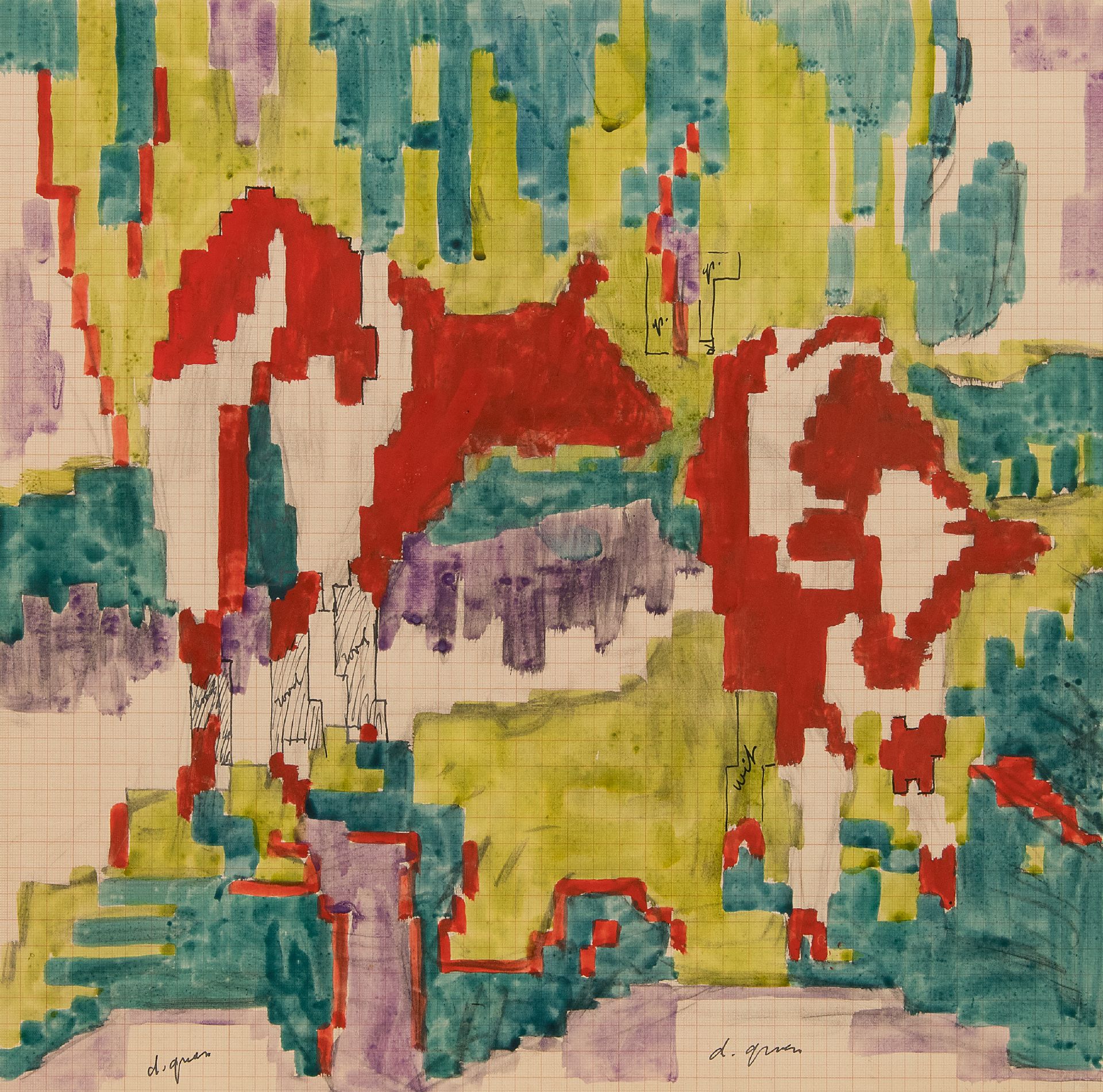 inkt en aquarel op papier 45,3 x 42,8 cm