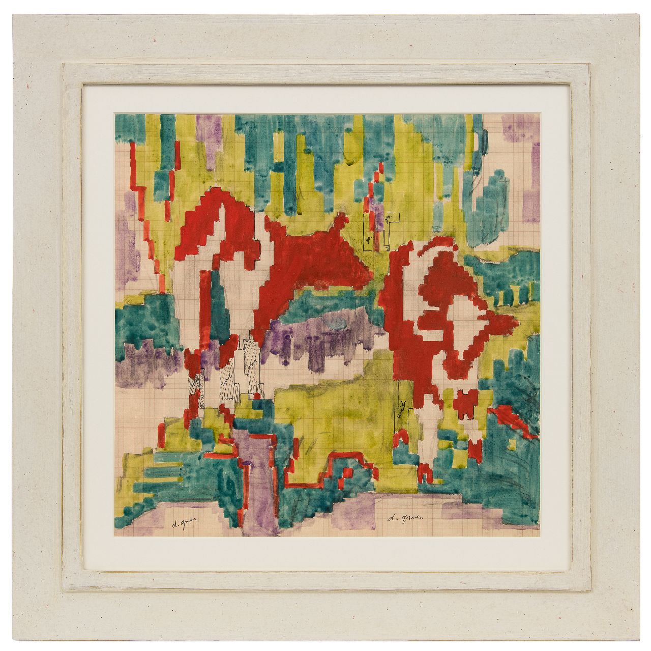Jan Altink kunstwerk • aquarel • tekening • te koop Ontwerp voor een (wand)kleed: Twee koeien