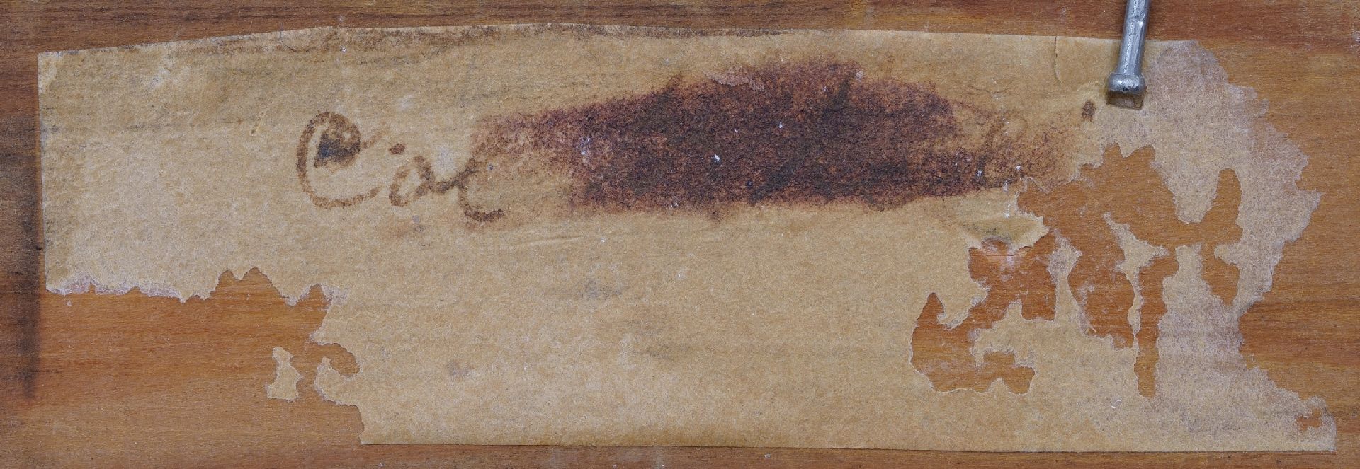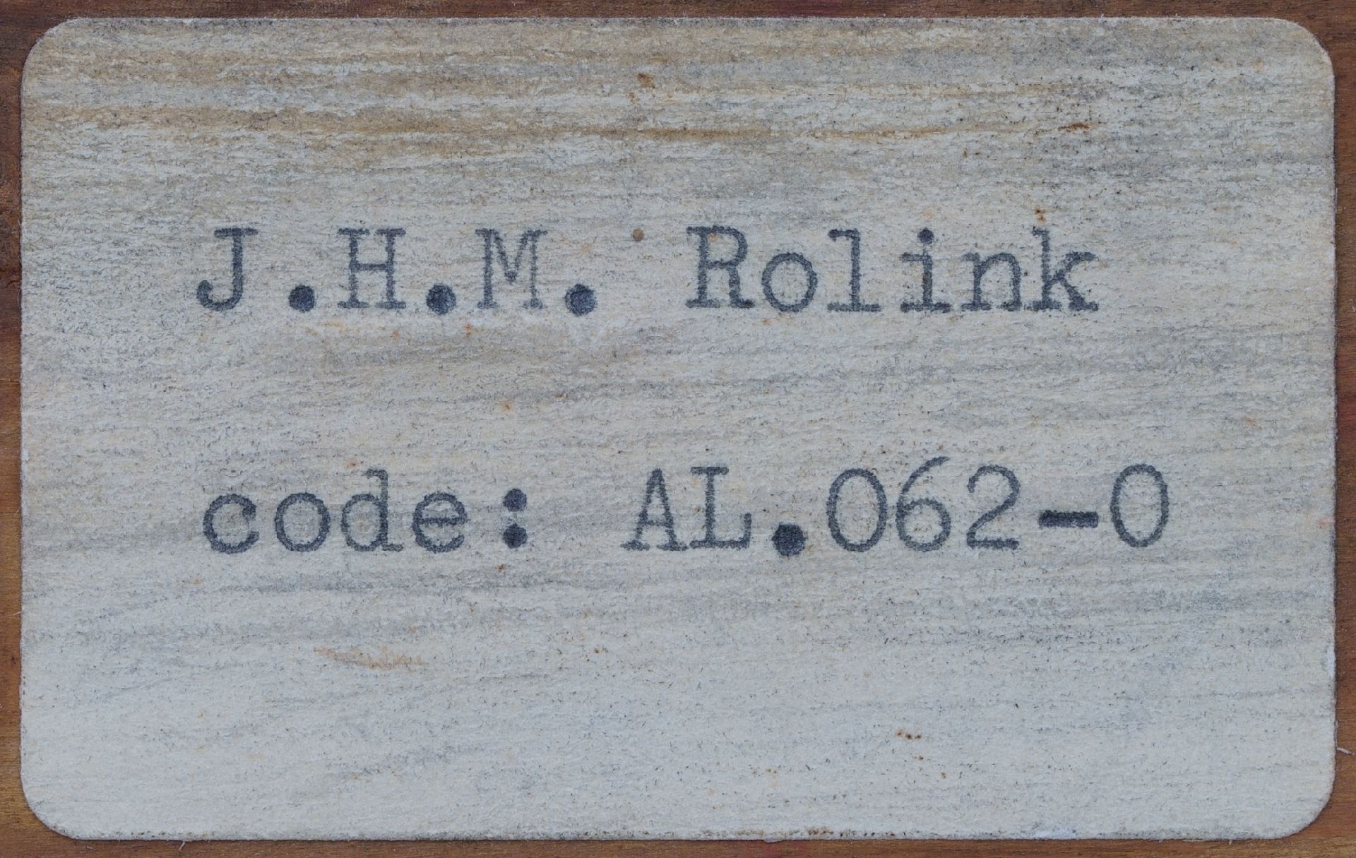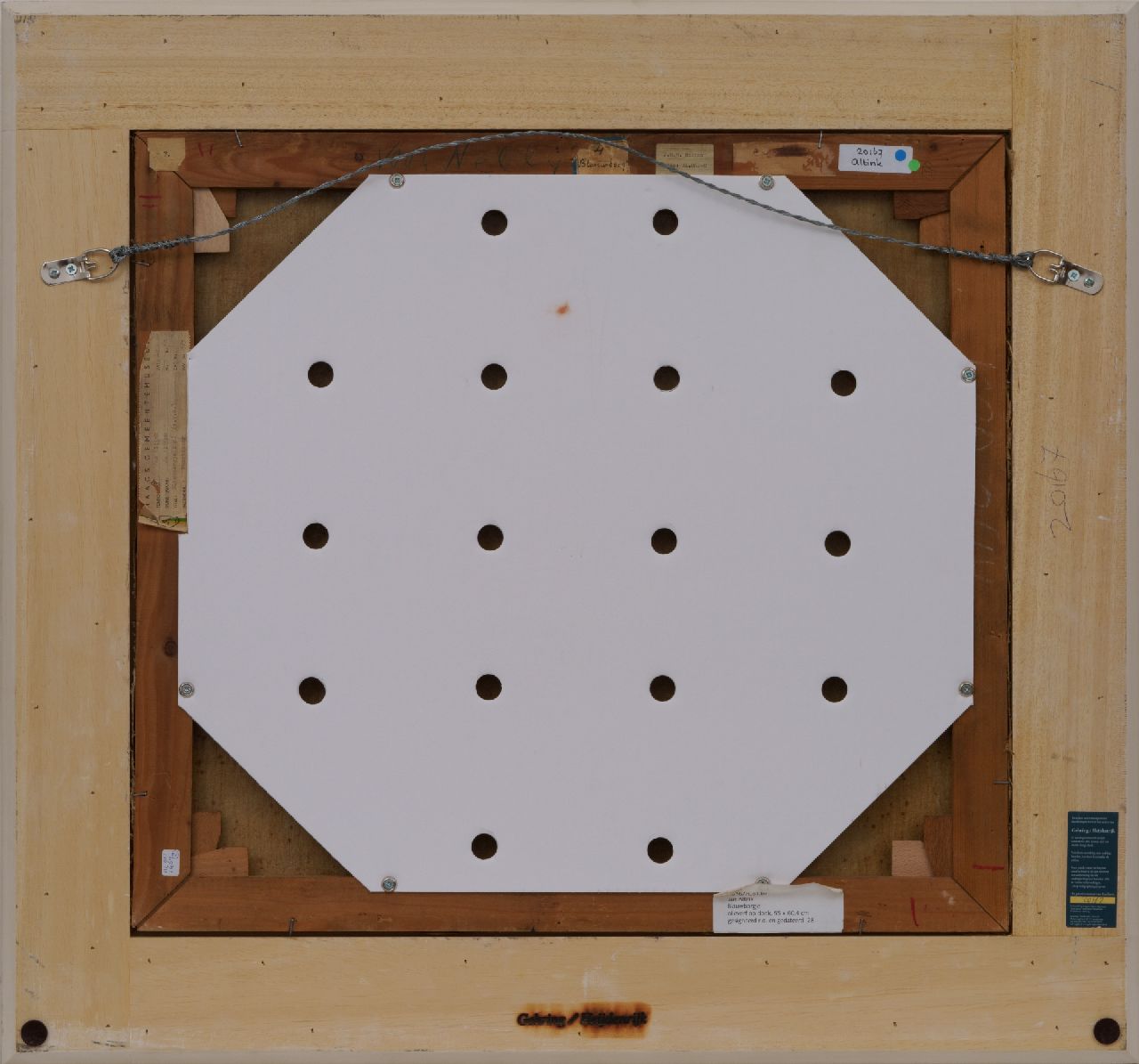 annotatie op etiket op spieraam: '4 Blauwborgje' en op spieraam: 'Voor Nelly' (Nelly Hubbeling, Altinks latere echtgenote).