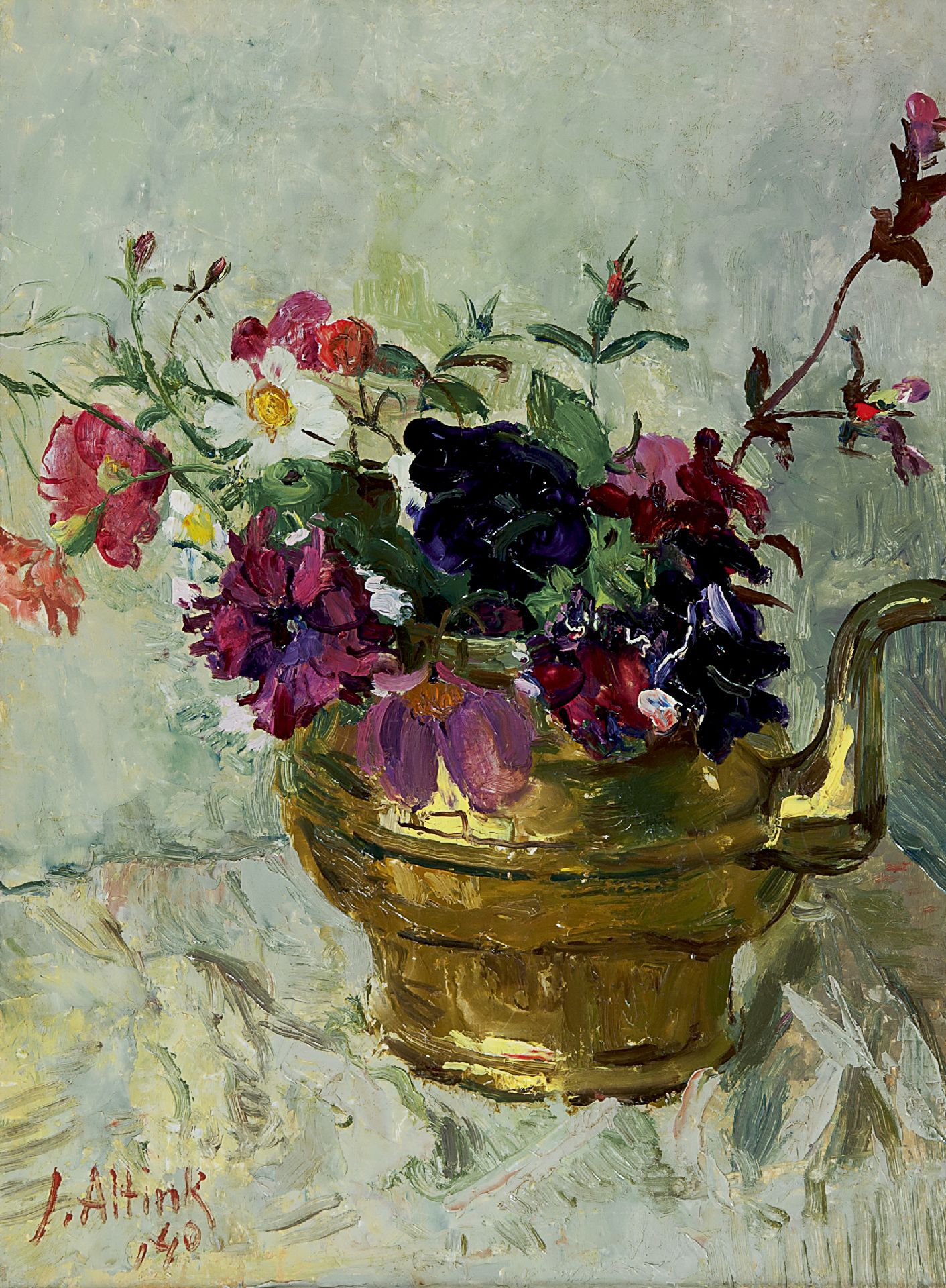 Jan Altink kunstwerk • schilderij • voorheen te koop Bloemen in koperen ketel