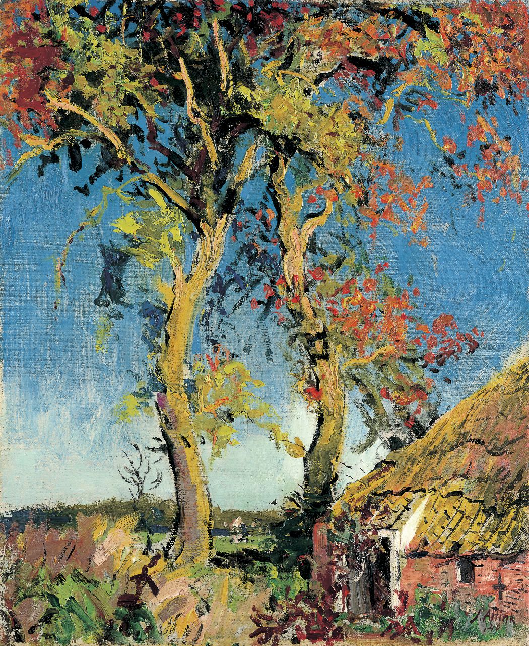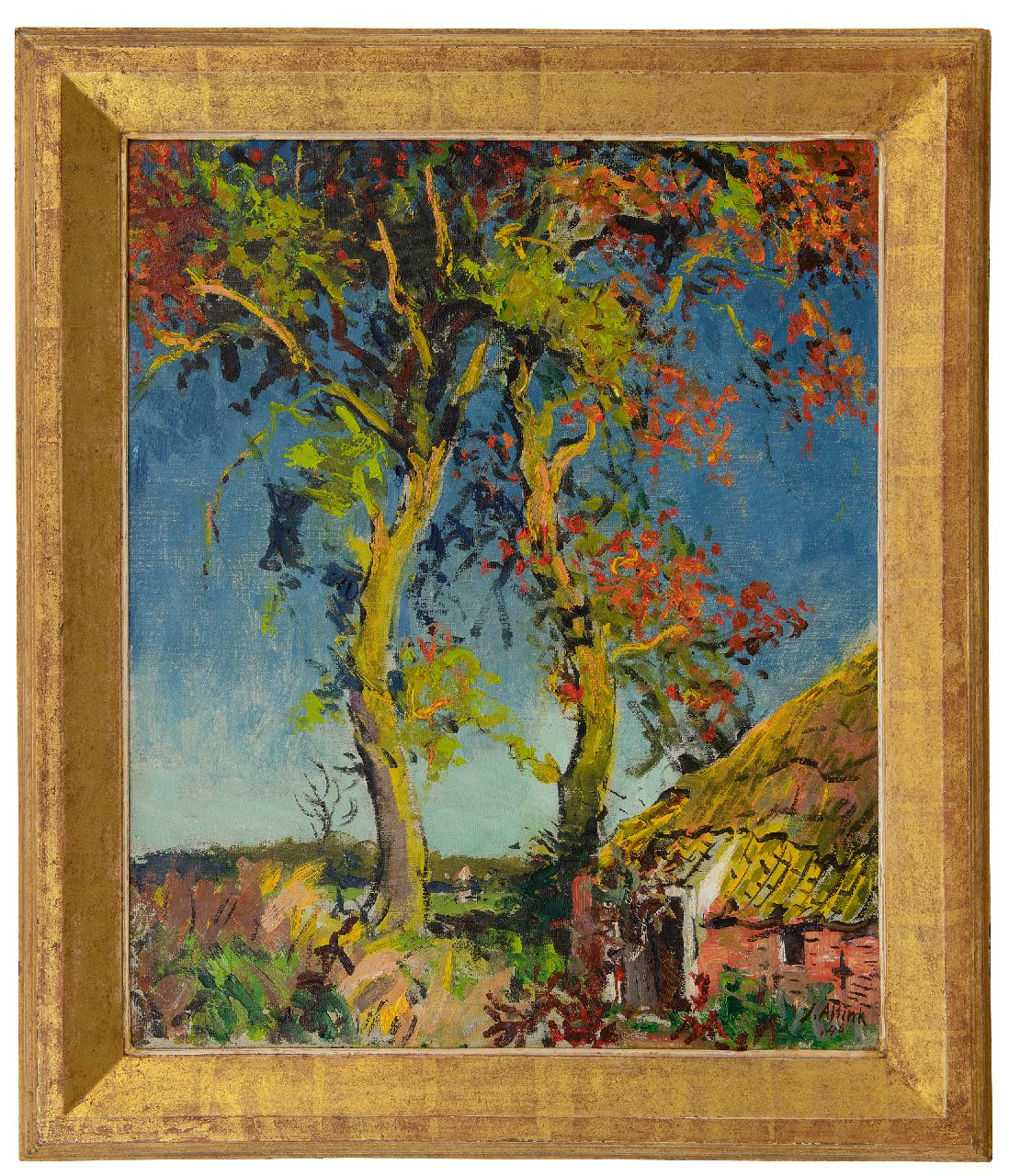 Jan Altink kunstwerk • schilderij • voorheen te koop Boerderij bij hoge bomen