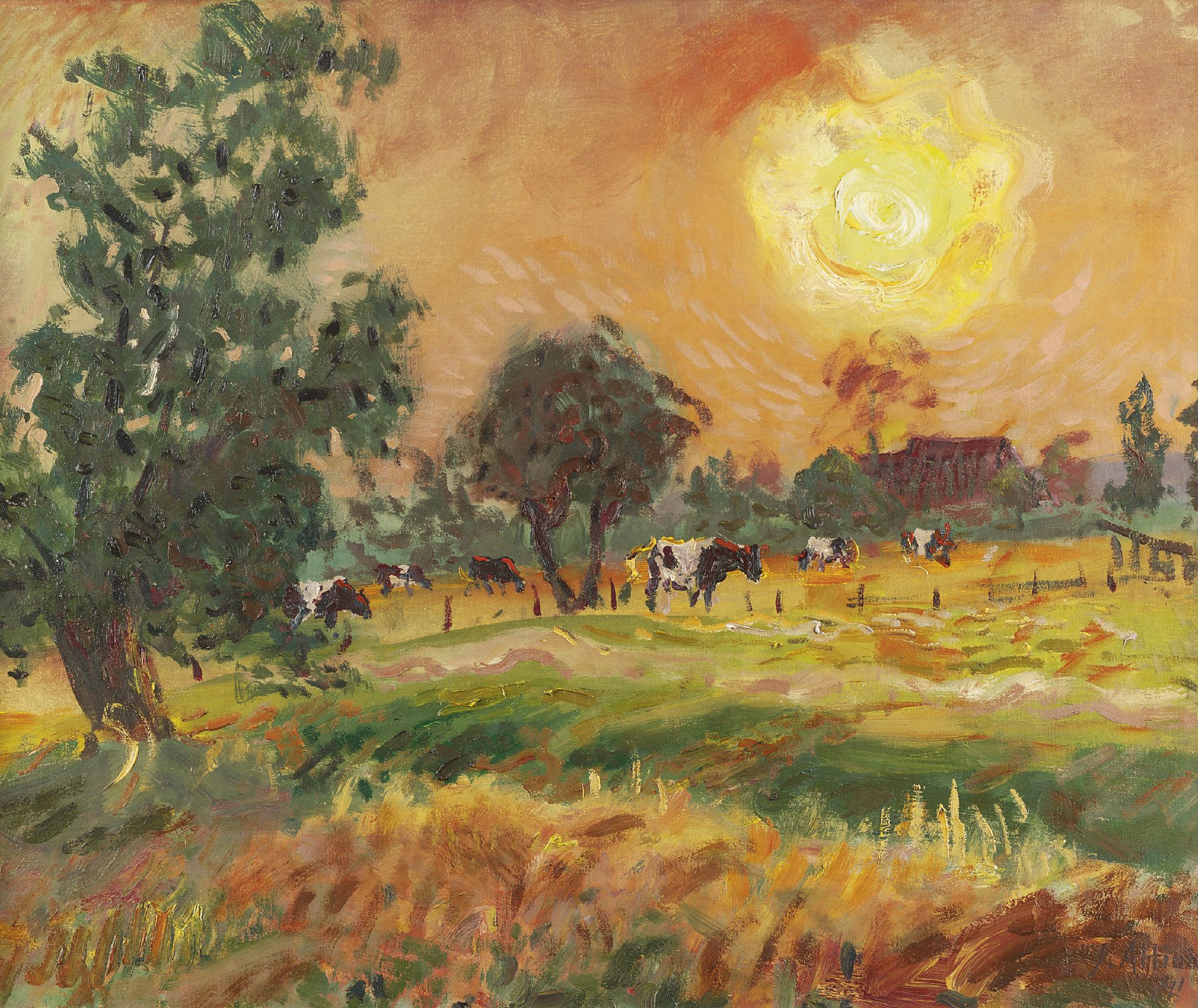 Jan Altink kunstwerk • schilderij • voorheen te koop Koeien in de avondzon