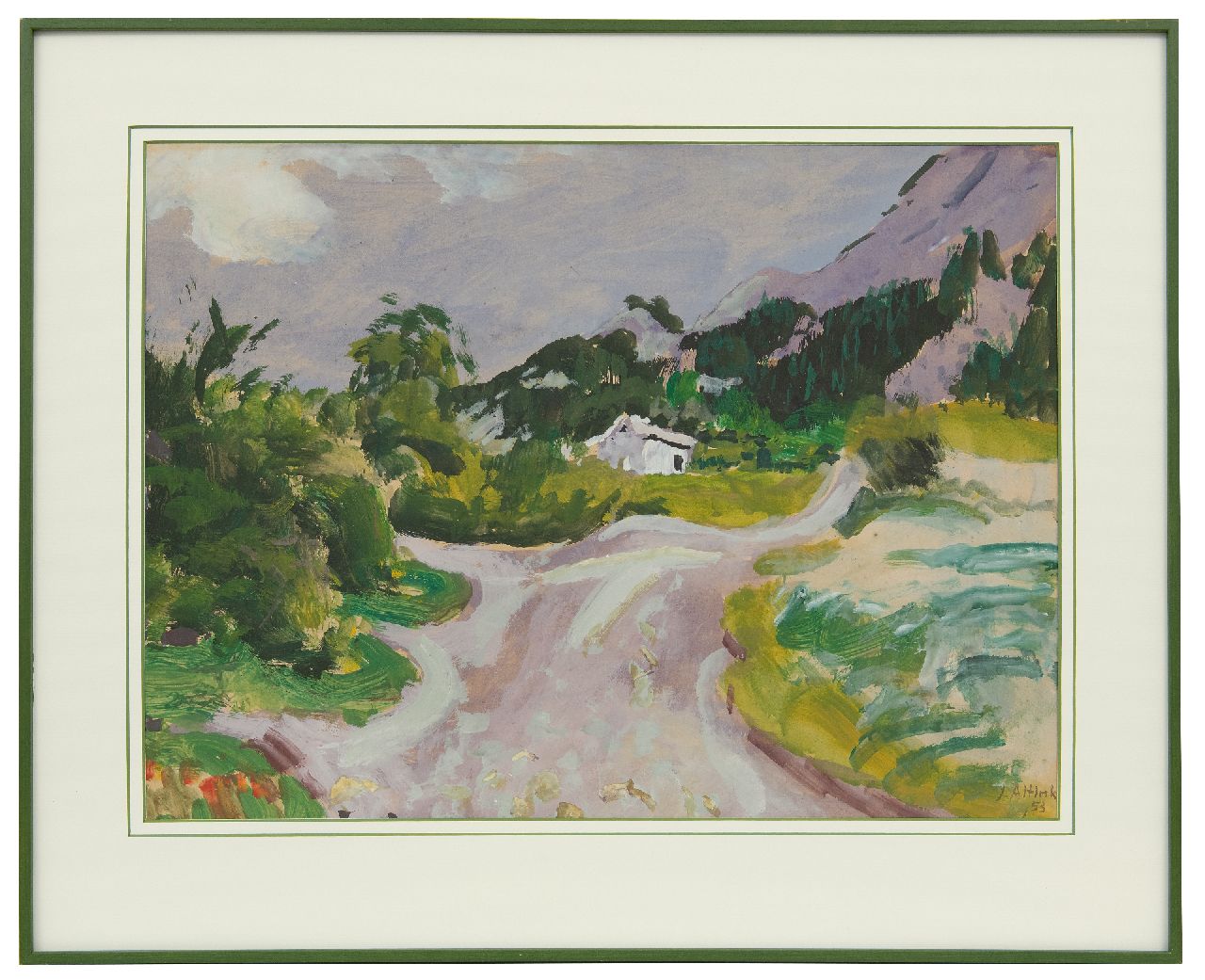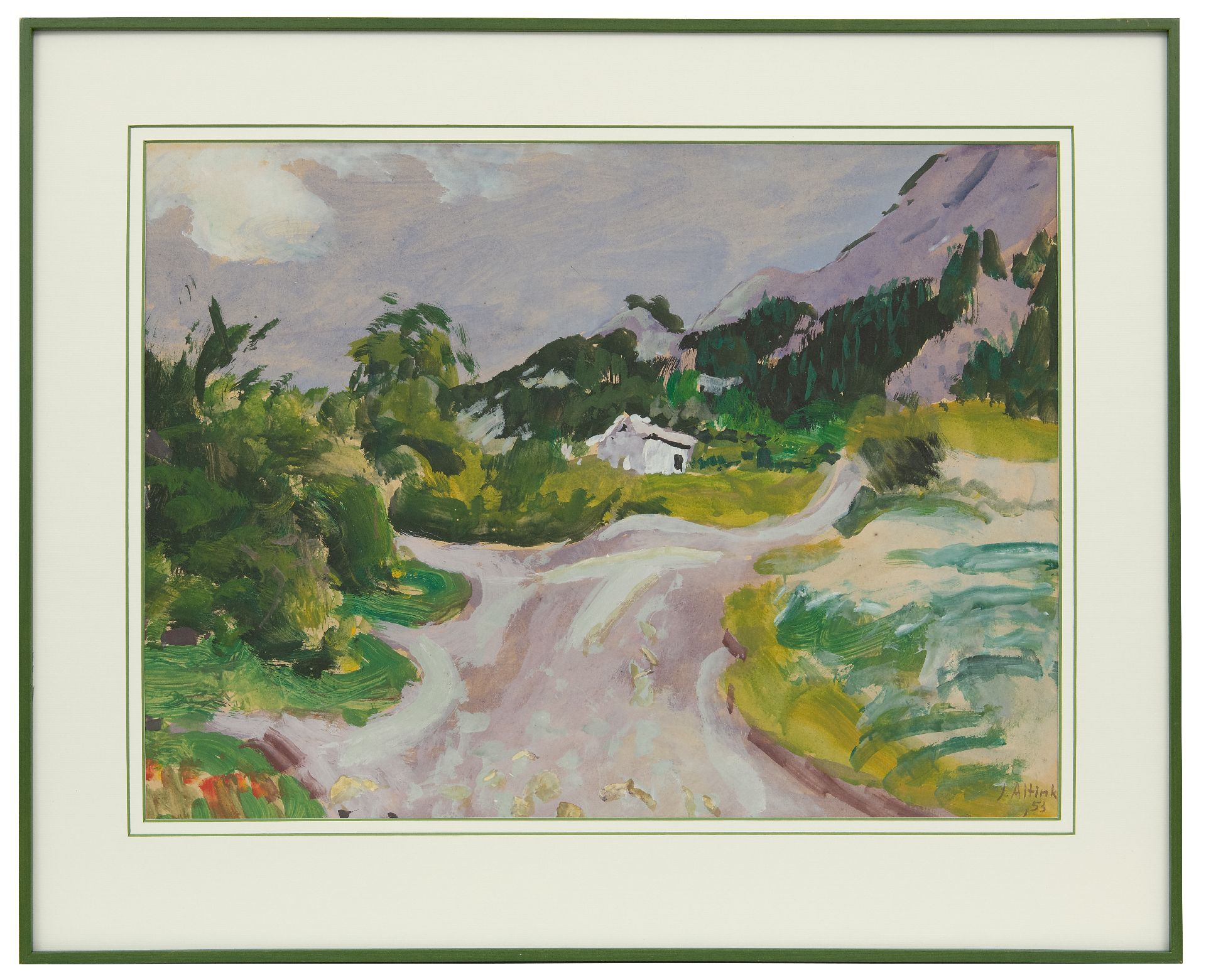 Jan Altink kunstwerk • aquarel • tekening • voorheen te koop Landschap in de Haute-Savoie