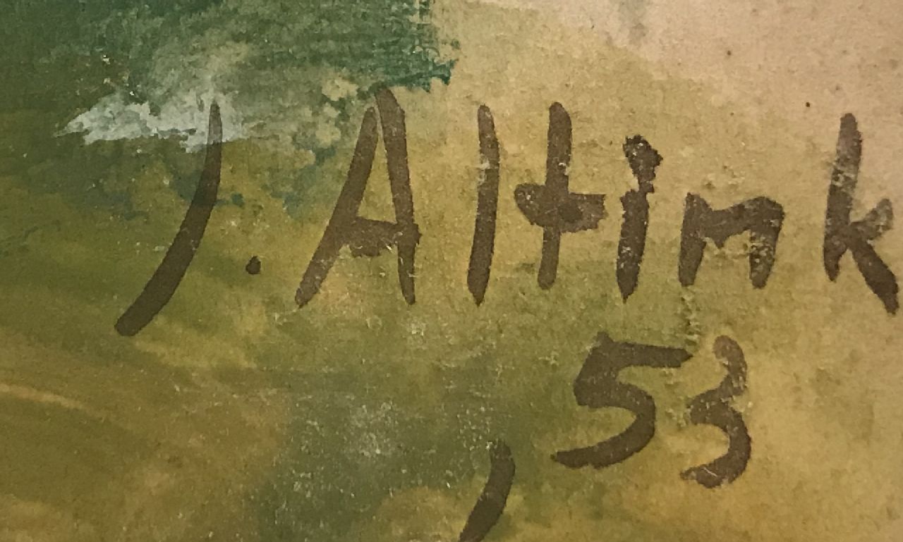 Jan Altink behoorde tot de Groninger kunstkring De Ploeg, waar hij zich van de andere leden onderscheidde door zijn grote voorliefde voor het buiten werken. Hij schilderde vooral landschappen en Groninger dorpsgezichten, daarnaast ook stadsgezichten en enkele portretten en stillevens. Aanvankelijk bevatte zijn palet vooral grijze en groene tinten maar na 1924 brak een heftig expressionistische periode aan. In wasverf, met sterke, felle kleuren en in vereenvoudigde vormen registreerde hij de werkelijkheid. Zijn latere werk is meer lyrisch-impressionistisch van aard.