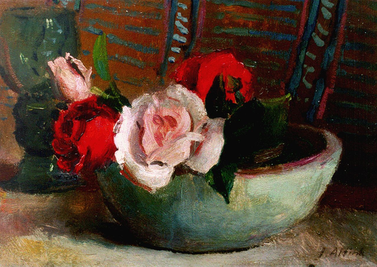 Jan Altink kunstwerk • schilderij • voorheen te koop Stilleven met rozen