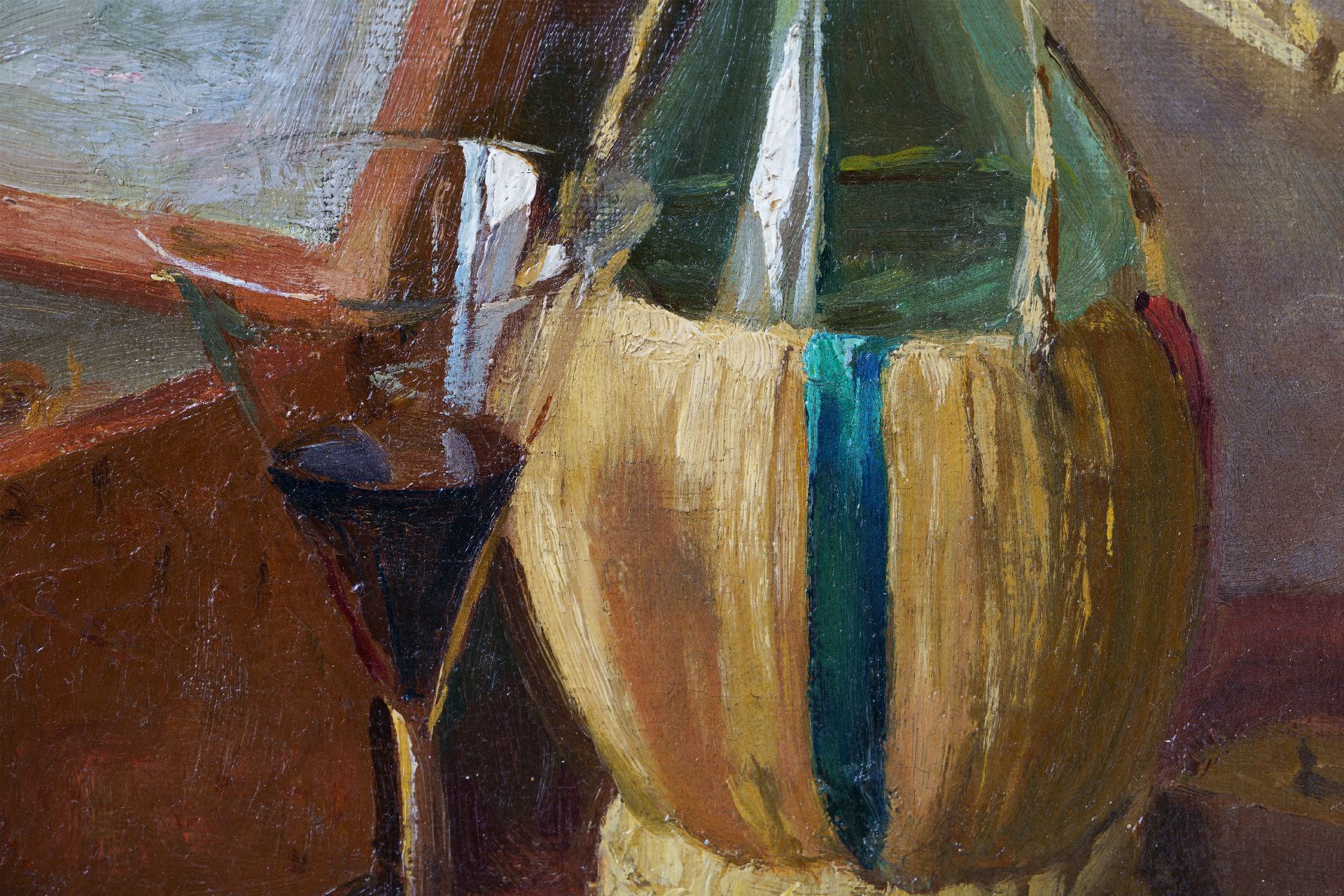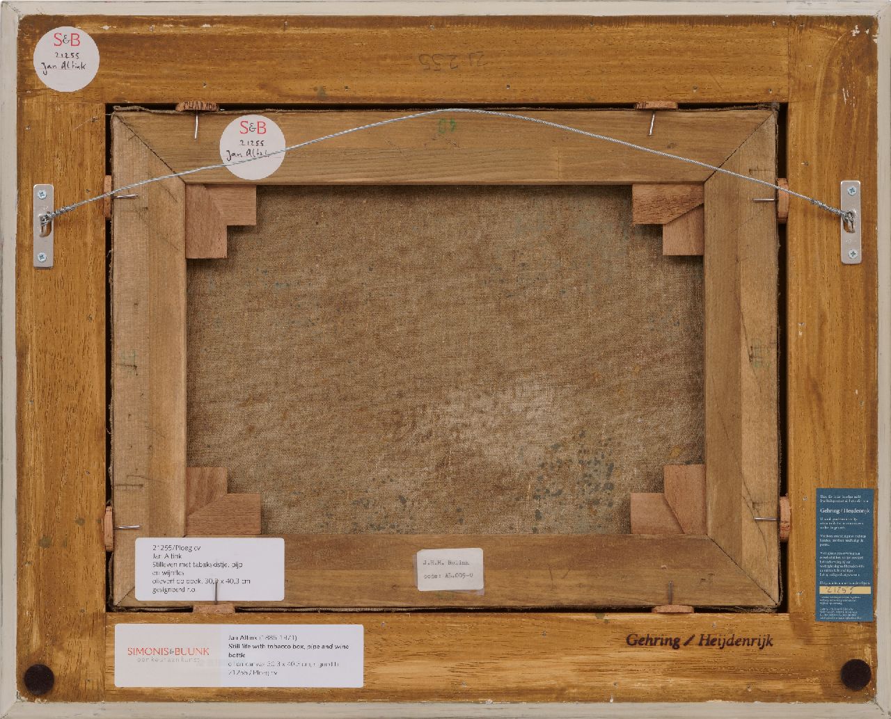 Stilleven van Altinks tabakskistje, pijp en wijnfles