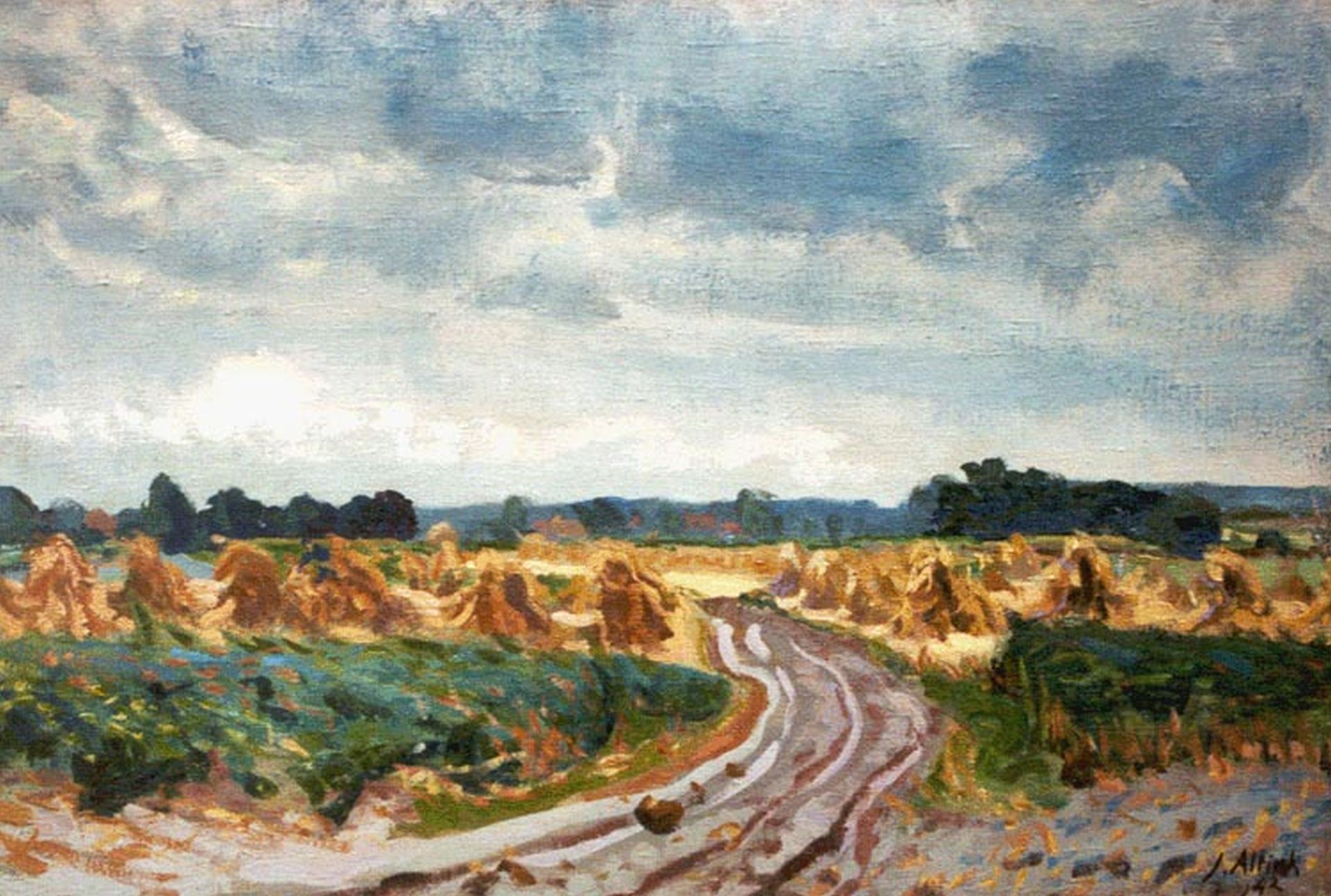 Jan Altink kunstwerk • schilderij • voorheen te koop Veld met korenschoven