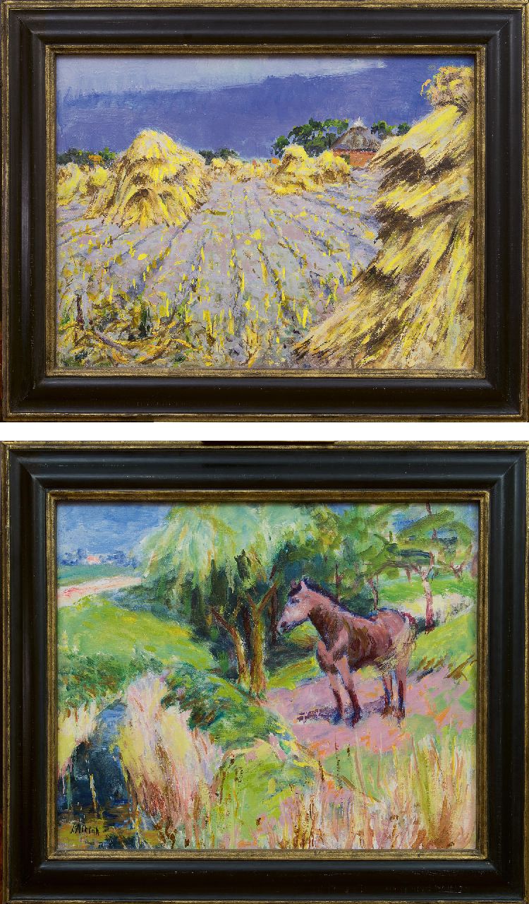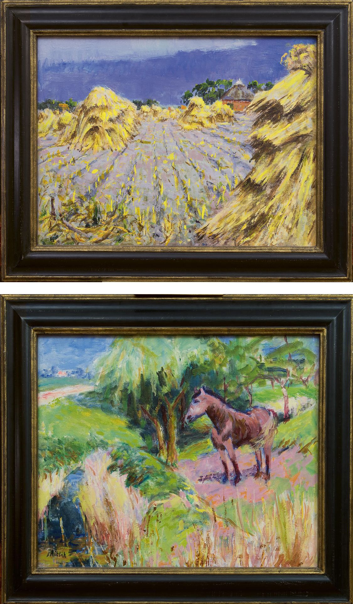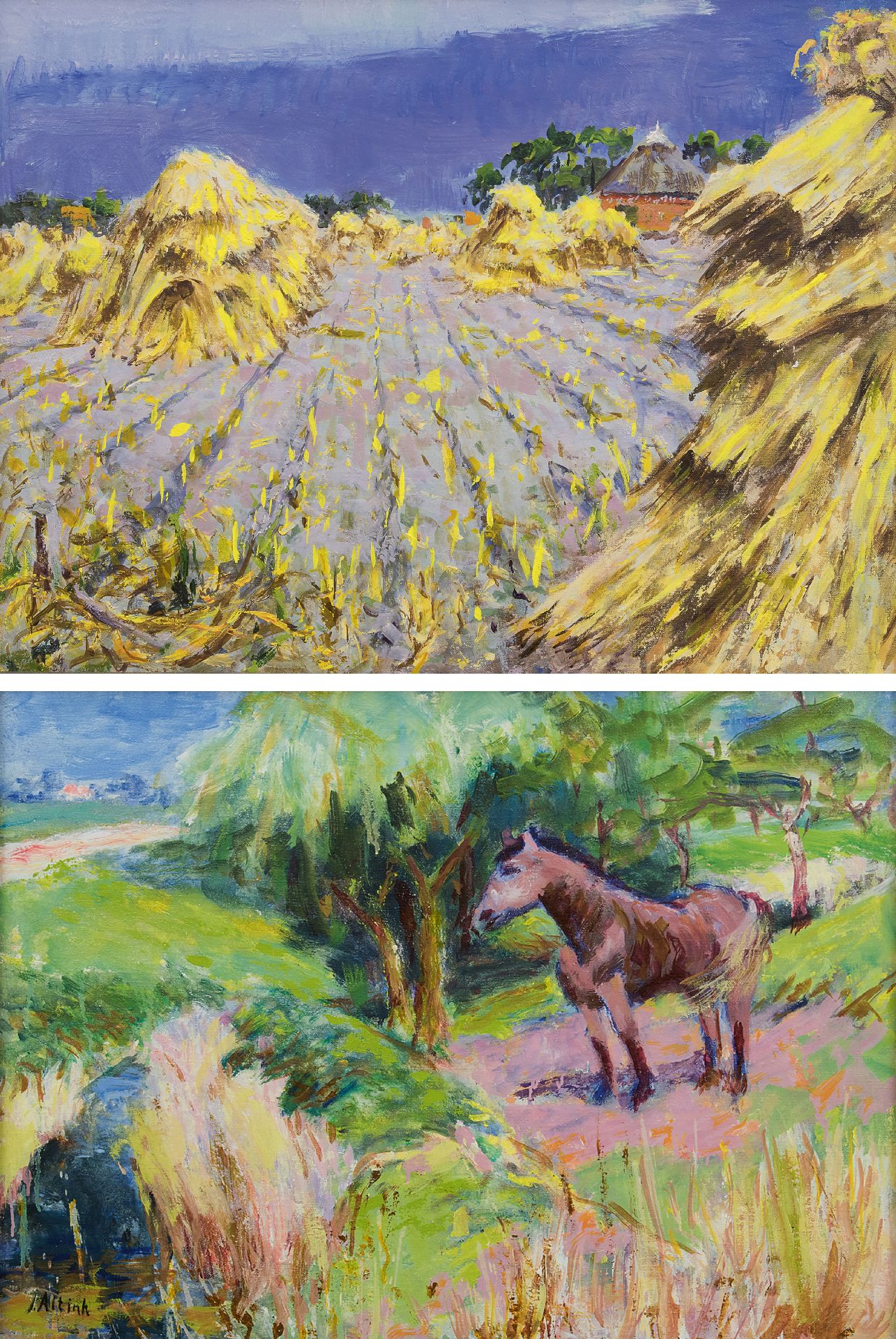 Jan Altink kunstwerk • schilderij • voorheen te koop Vlasakker; verso: Boerenerf met paard