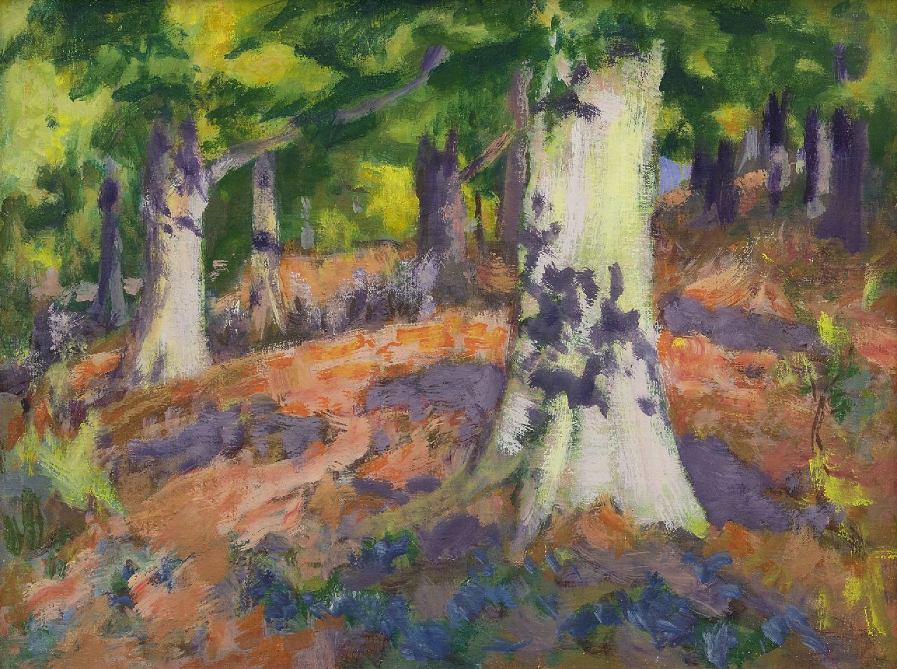 Jan Altink kunstwerk • schilderij • voorheen te koop Zon in het bos; Zomerlandschap