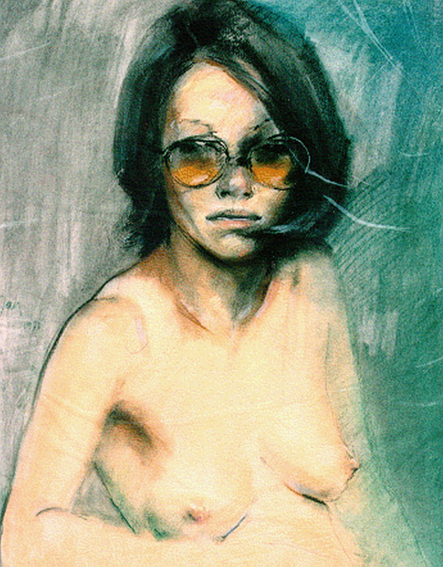 Jan Asselbergs kunstwerk • aquarel • tekening • voorheen te koop Halfnaakte vrouw met bril