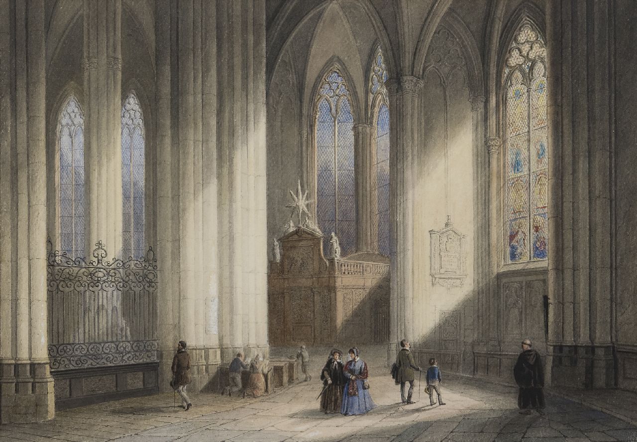 Jan Baptist Tetar van Elven kunstwerk • aquarel • tekening • voorheen te koop Interieur van de Dom van Keulen