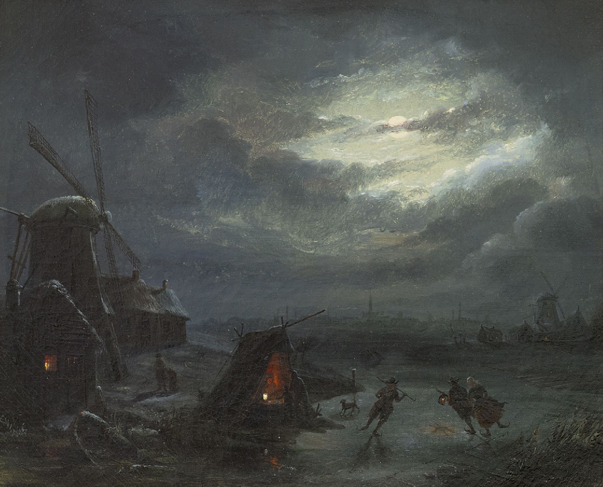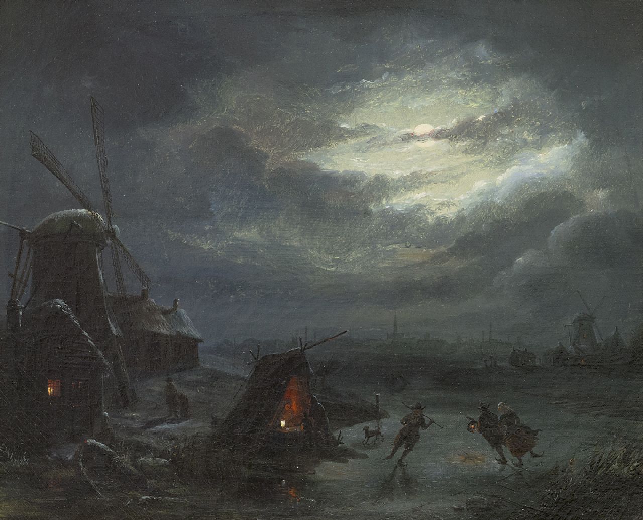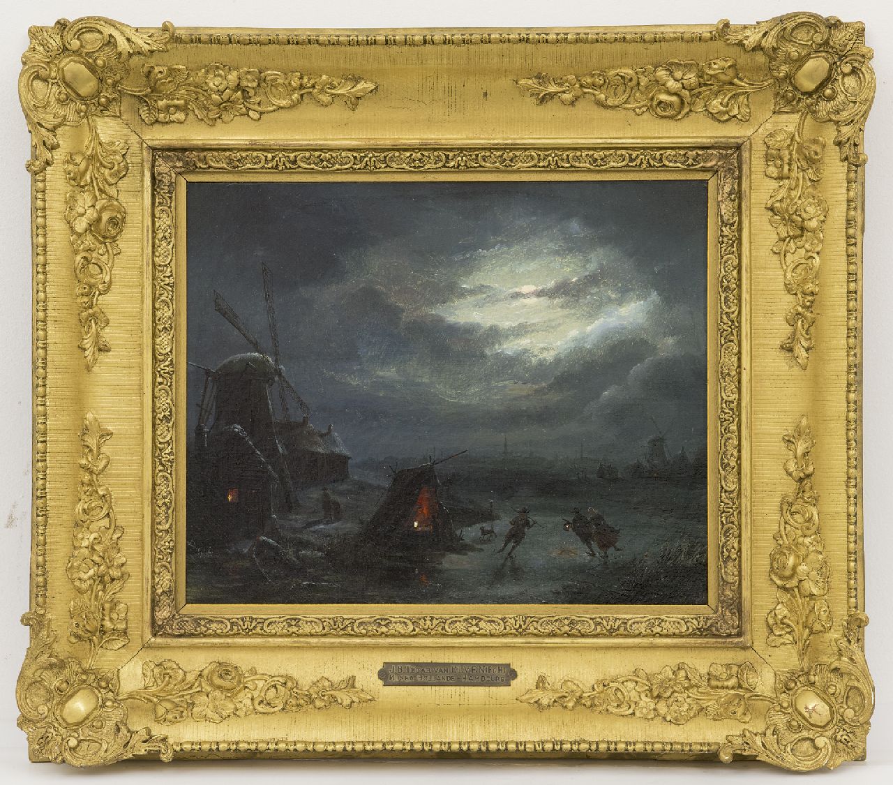 Jan Baptist Tetar van Elven kunstwerk • schilderij • te koop IJsgezicht bij maanlicht
