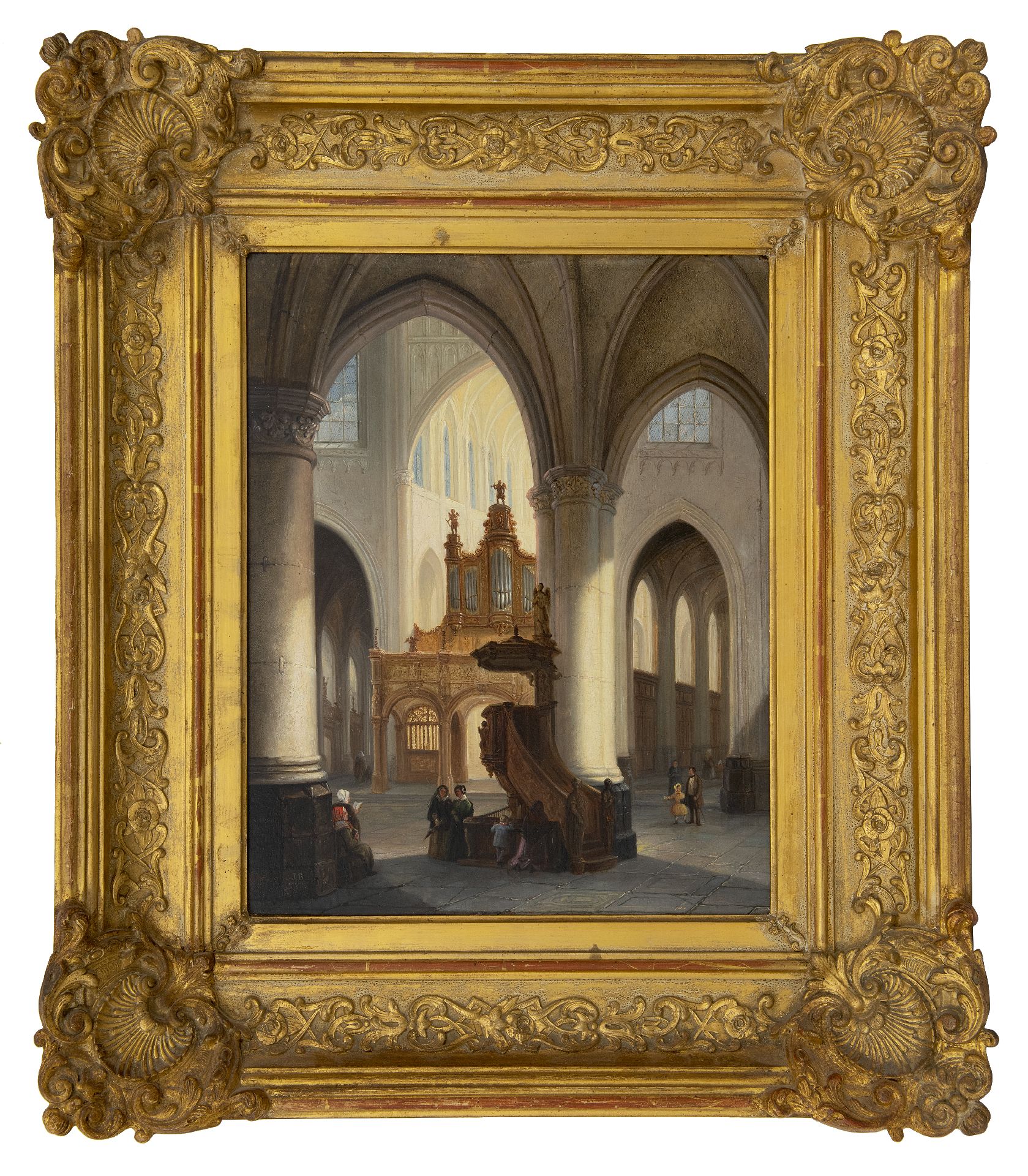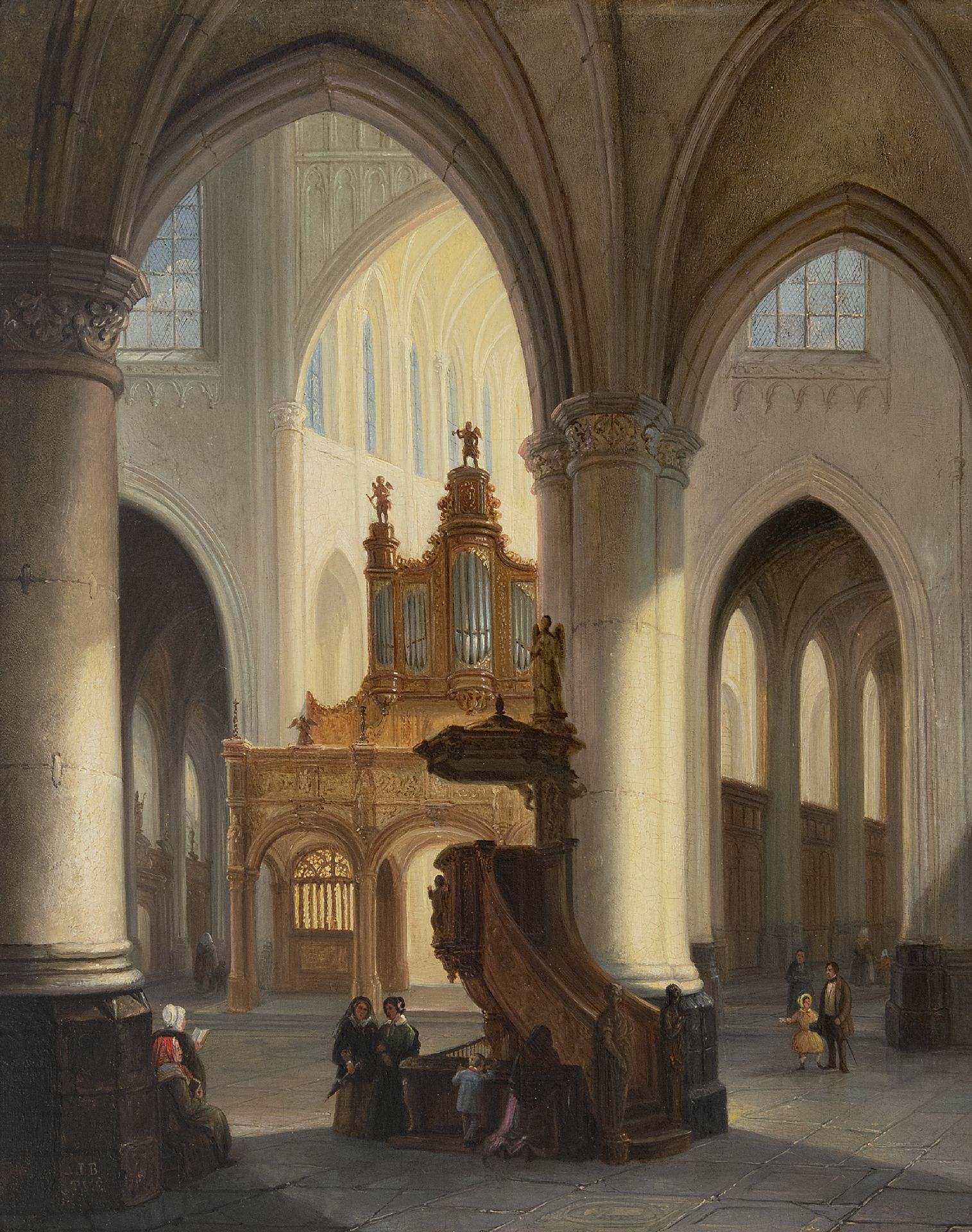Jan Baptist Tetar van Elven kunstwerk • schilderij • voorheen te koop Kerkinterieur met figuren