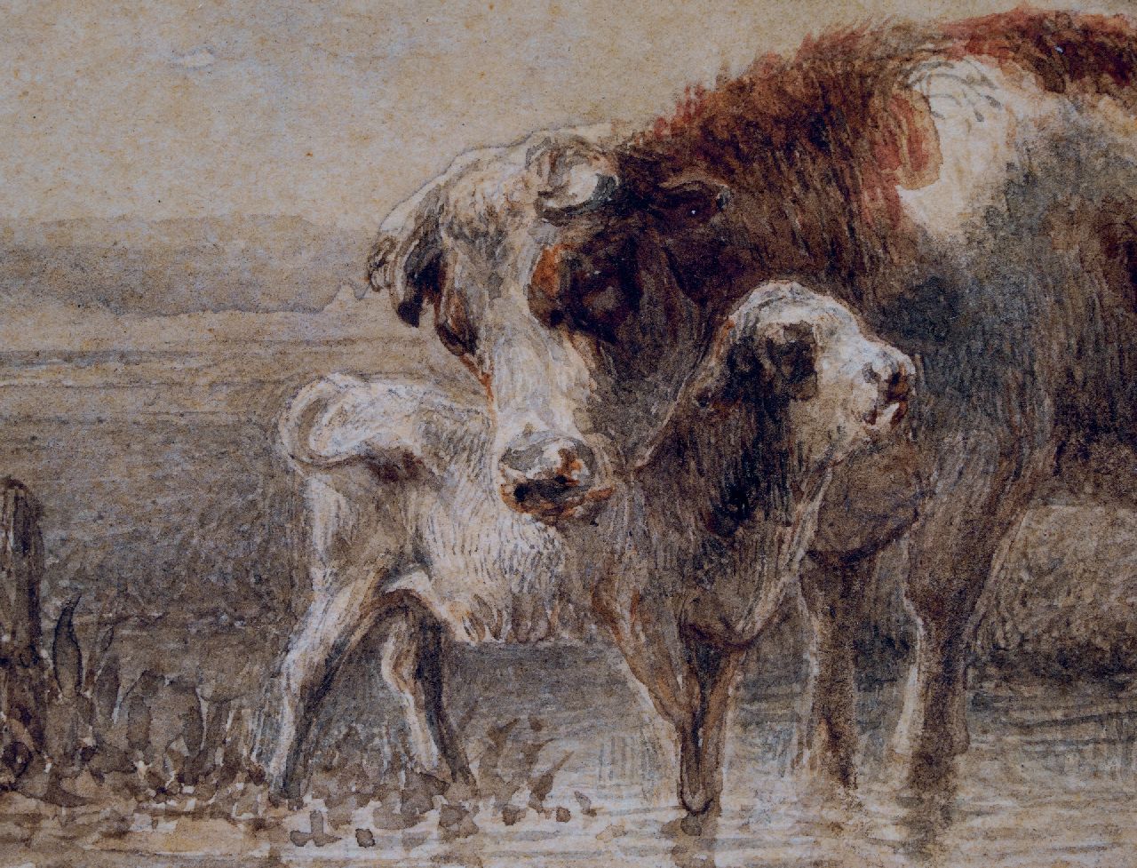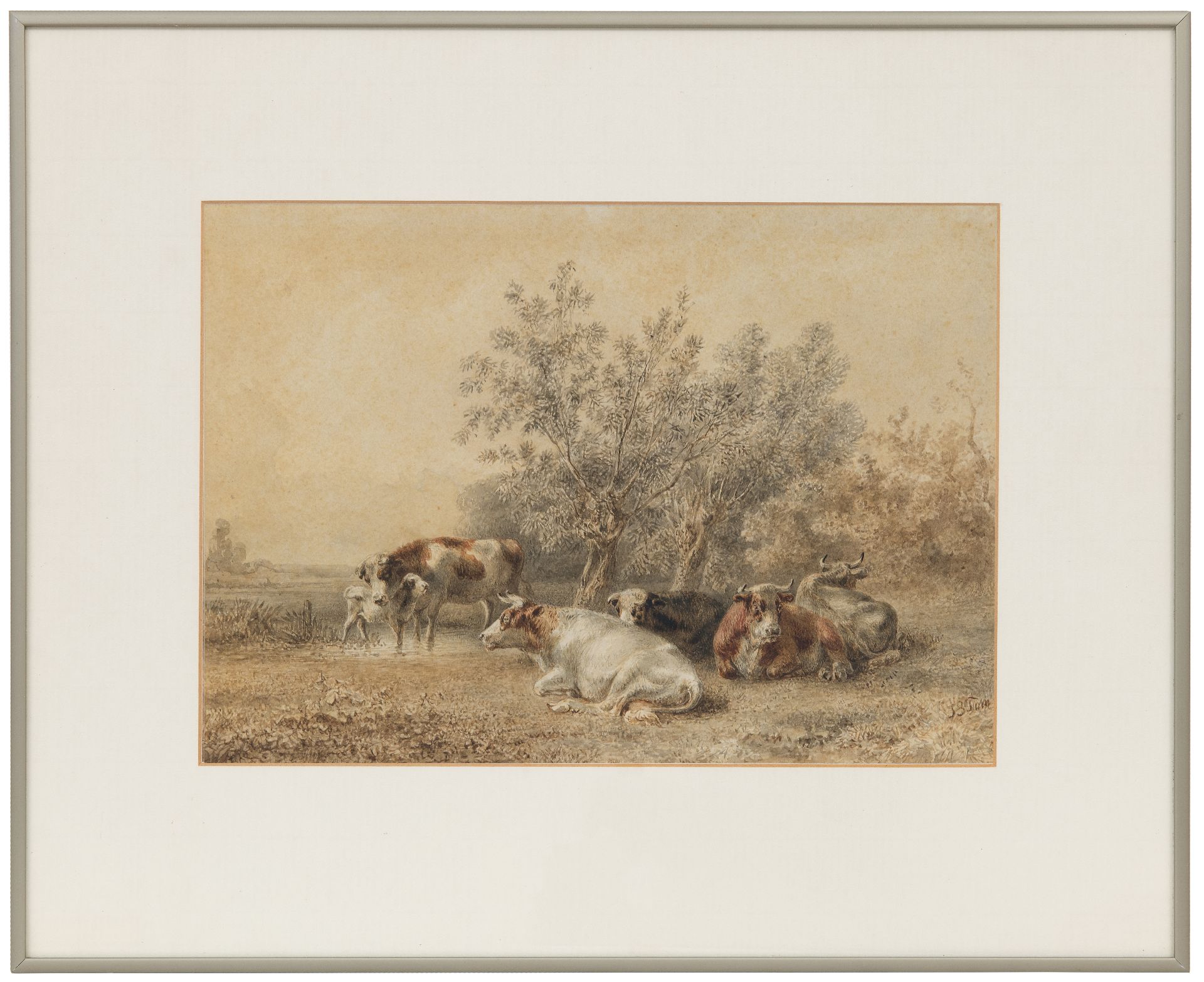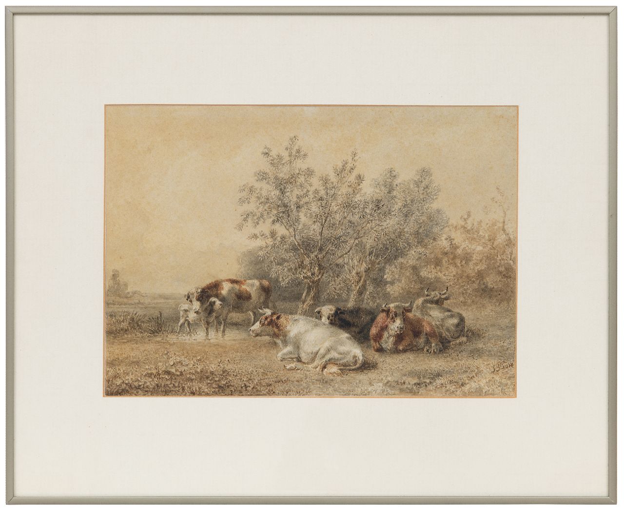 Jan Bedijs Tom kunstwerk • aquarel • tekening • te koop Koeien bij een wilgenbosje