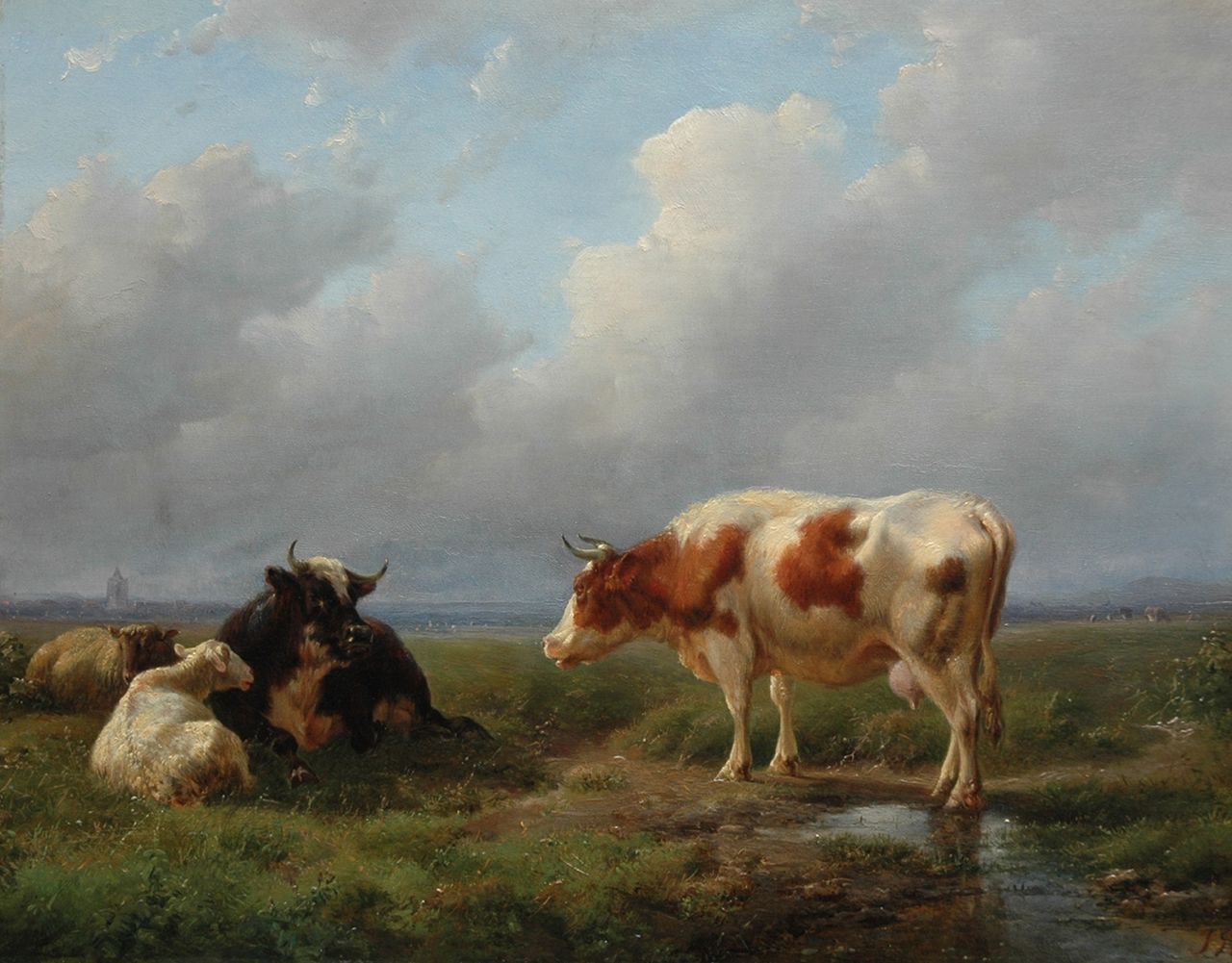 Jan Bedijs Tom kunstwerk • schilderij • voorheen te koop Koeien en schapen in de wei