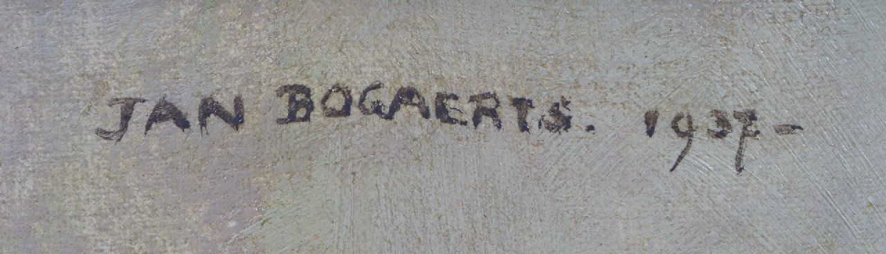 Na zijn opleiding aan de academies in Den Bosch en Antwerpen schilderde Jan Bogaerts aanvankelijk dromerige figuurstukken en sprookjesachtige parken en tuinen in de sfeer van het symbolisme. Hierin is de invloed te bespeuren van zijn Bossche leermeester Antoon van Welie. Vanaf 1915 maakte hij vooral stillevens, zowel van bloemen als van voorwerpen. Deze zijn realistischer verbeeld dan de landschappen, maar net zo stemmig en verstild. Voor zijn composities gebruikte Bogaerts zowel alledaagse attributen als antieke voorwerpen, zoals karaffen, flessen, schalen, beschilderde kistjes en juwelen, die hij zette tegen een sobere achtergrond. Zijn bloemstillevens vallen op door hun originele compositie en prachtige kleuren.