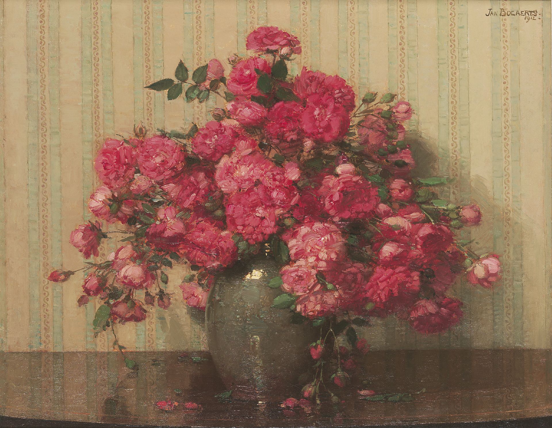 Jan Bogaerts kunstwerk • schilderij • voorheen te koop Rose trosroosjes in een vaas