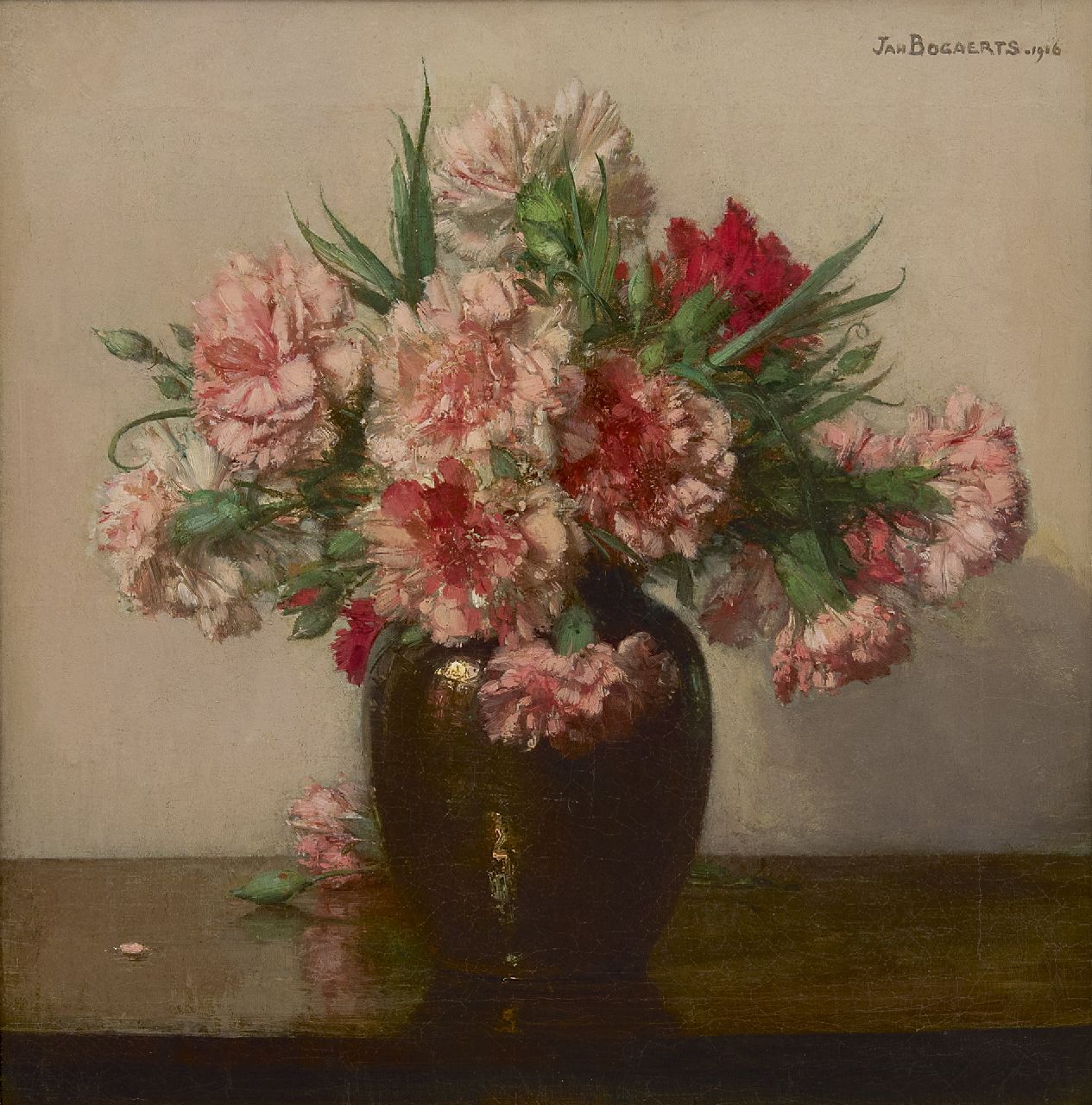 Jan Bogaerts kunstwerk • schilderij • voorheen te koop Roze anjers