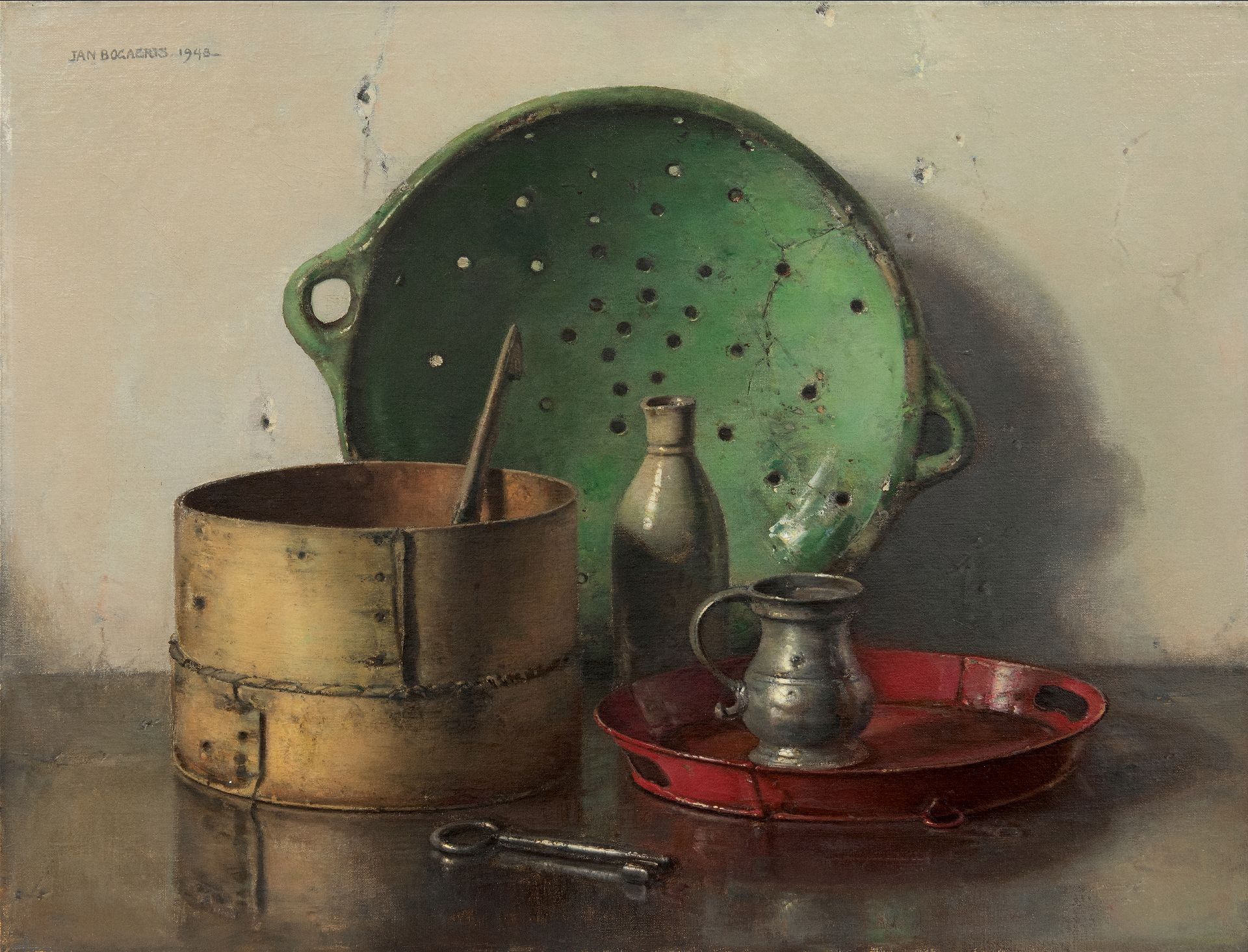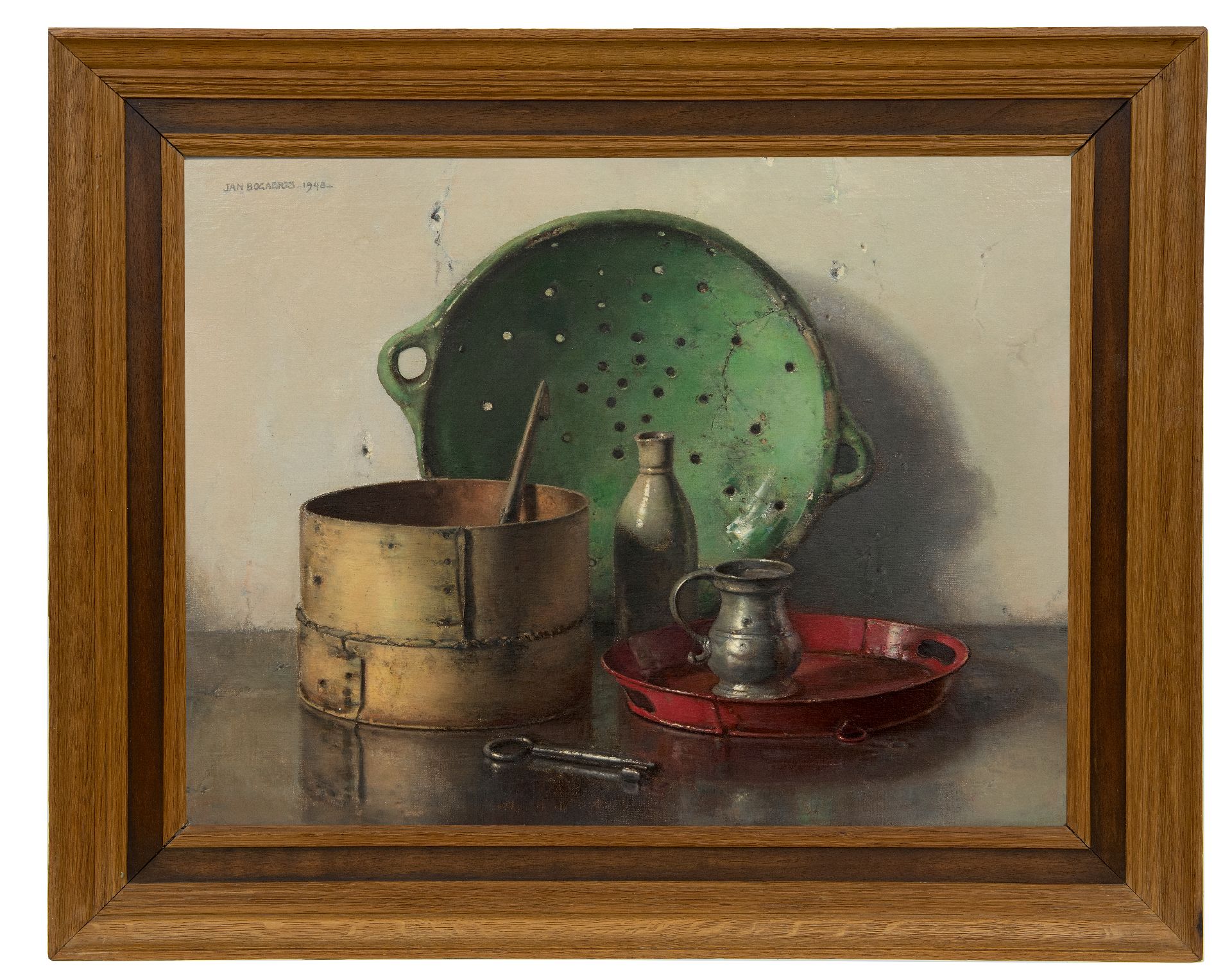 Jan Bogaerts kunstwerk • schilderij • voorheen te koop Stilleven met groene zeef