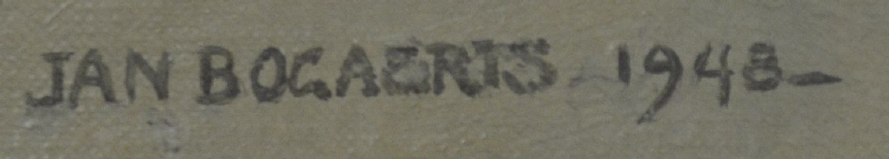 Na zijn opleiding aan de academies in Den Bosch en Antwerpen schilderde Jan Bogaerts aanvankelijk dromerige figuurstukken en sprookjesachtige parken en tuinen in de sfeer van het symbolisme. Hierin is de invloed te bespeuren van zijn Bossche leermeester Antoon van Welie. Vanaf 1915 maakte hij vooral stillevens, zowel van bloemen als van voorwerpen. Deze zijn realistischer verbeeld dan de landschappen, maar net zo stemmig en verstild. Voor zijn composities gebruikte Bogaerts zowel alledaagse attributen als antieke voorwerpen, zoals karaffen, flessen, schalen, beschilderde kistjes en juwelen, die hij zette tegen een sobere achtergrond. Zijn bloemstillevens vallen op door hun originele compositie en prachtige kleuren.
