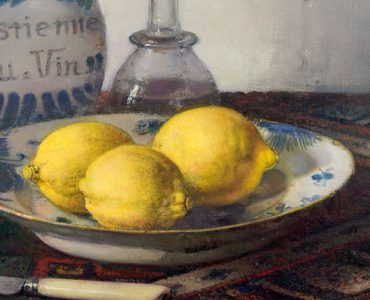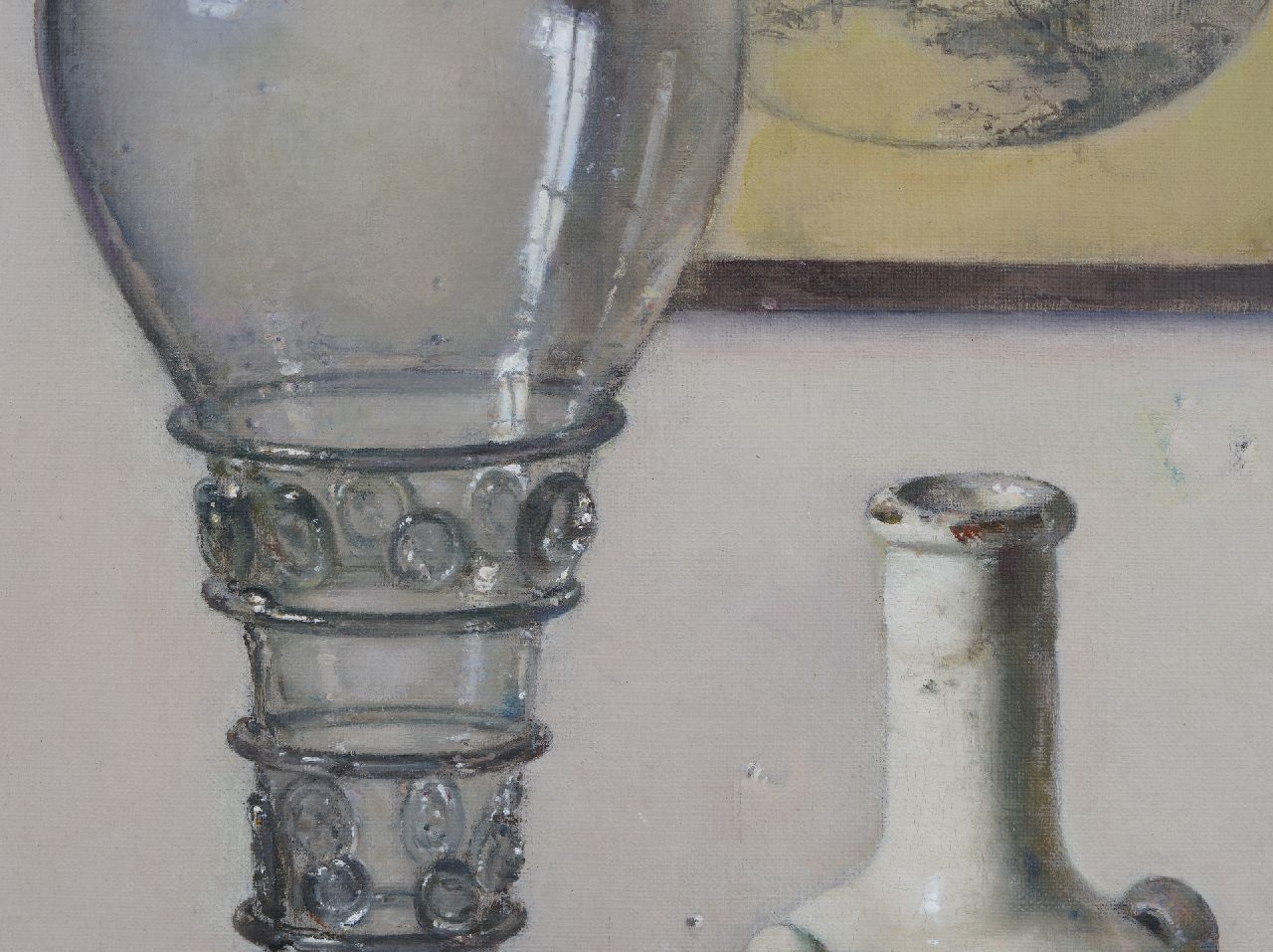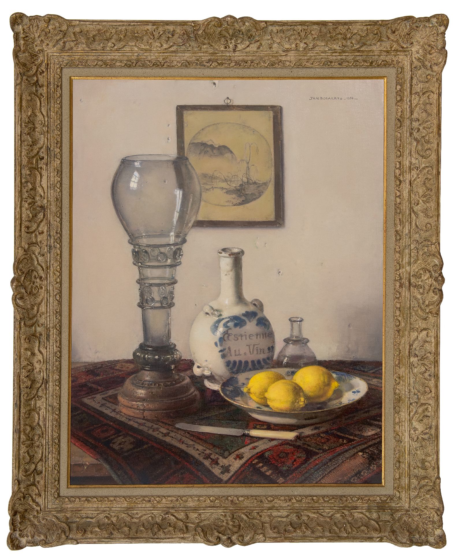 Jan Bogaerts kunstwerk • schilderij • te koop Stilleven met roemer, stenen kruik en bord met citroenen