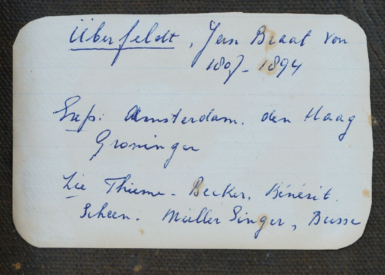 Jan Braet von Uberfeldt, invloedrijk schilder van portretten en genre- en historiestukken, was een leerling van de destijds zeer bekende genre- en portretschilder Jan Adam Kruseman. Hij woonde het grootste deel van zijn leven in Amsterdam. In 1877 vestigde hij zich in Langerak bij Doetinchem. Hij gaf les aan schilders als Jacob Willem Gruijter en J.F.P. Portielje, maar was ook een vroege leermeester van Piet Mondriaan.