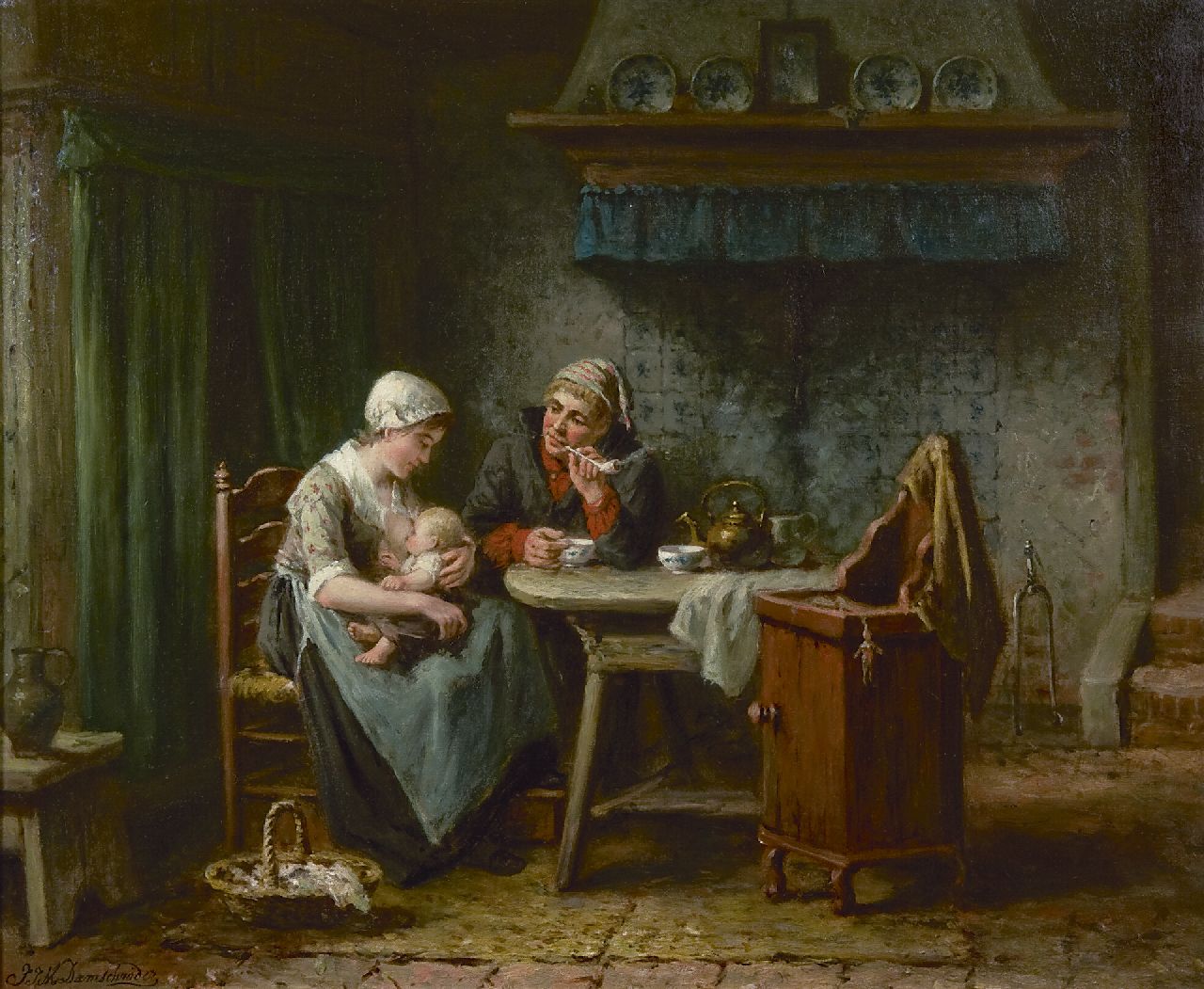 Jan Damschreuder werd in 1825 geboren in Amsterdam, waar halverwege de 19e eeuw de figuur- en historieschilderkunst in hoog aanzien stond. Hij specialiseerde zich dan ook in het schilderen van taferelen uit de Nederlandse geschiedenis en verhalende interieurs met figuren. Deze gaf hij sprekende titels als 'de terugkomst van de zeeman' en 'het bezoek van grootmoeder'. Met name zijn voorstellingen met kinderen waren zeer geliefd.