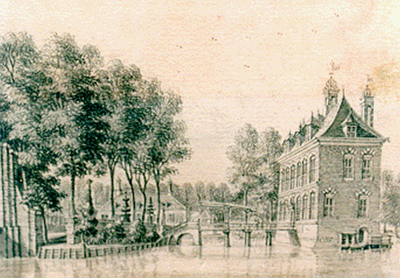 Jan de Beijer kunstwerk • aquarel • tekening • voorheen te koop 't Huys de Vliet, van agteren te sien'