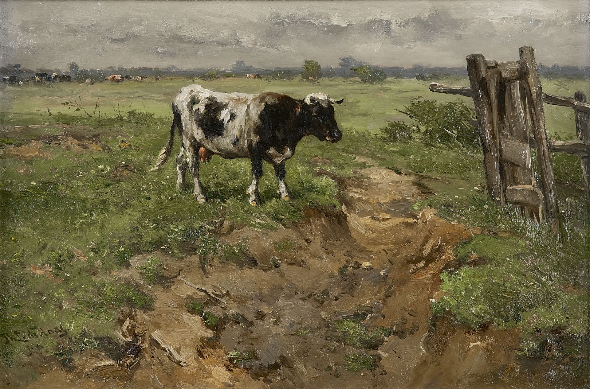 Jan de Haas kunstwerk • schilderij • voorheen te koop Koe bij een hek