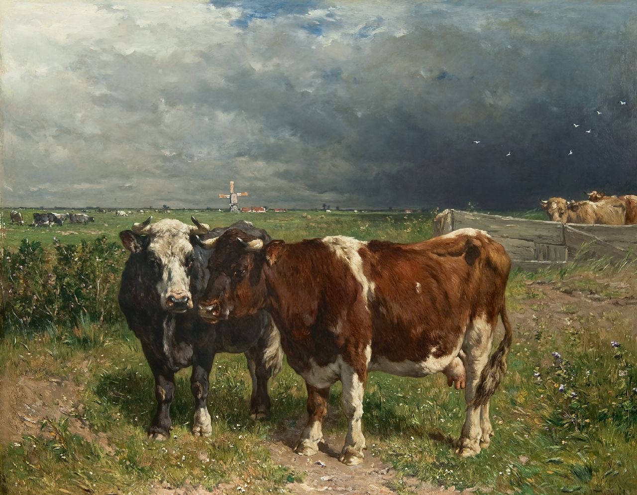 Jan de Haas kunstwerk • schilderij • voorheen te koop Koeien in landschap