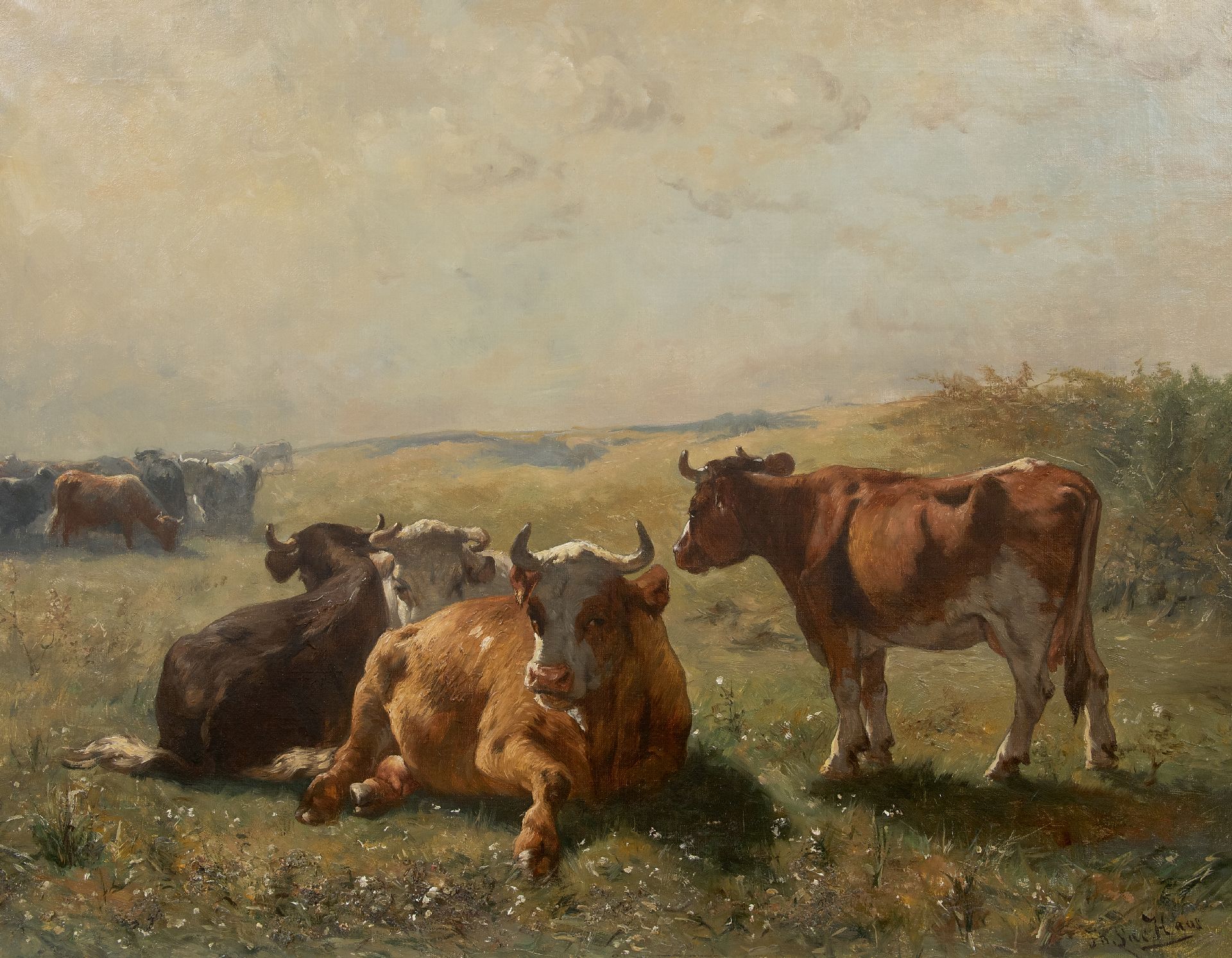 Jan de Haas schilderde voortreffelijke veestukken: welvarend rood- en zwartbont vee in een landschap of andere stoer gemodelleerde dieren. Het vee was voor hem duidelijk hoofdzaak, het landschap kwam op de tweede plaats. In navolging van Willem Roelofs, die hij rond 1853 in Oosterbeek had leren kennen, verhuisde De Haas in 1857 naar Brussel. Van daaruit kwam hij regelmatig naar Nederland om inspiratie op te doen. Bekend is dat hij menigmaal het werk van Willem Roelofs, P.J.C. Gabriel en J.Th. Abels van vee voorzag.