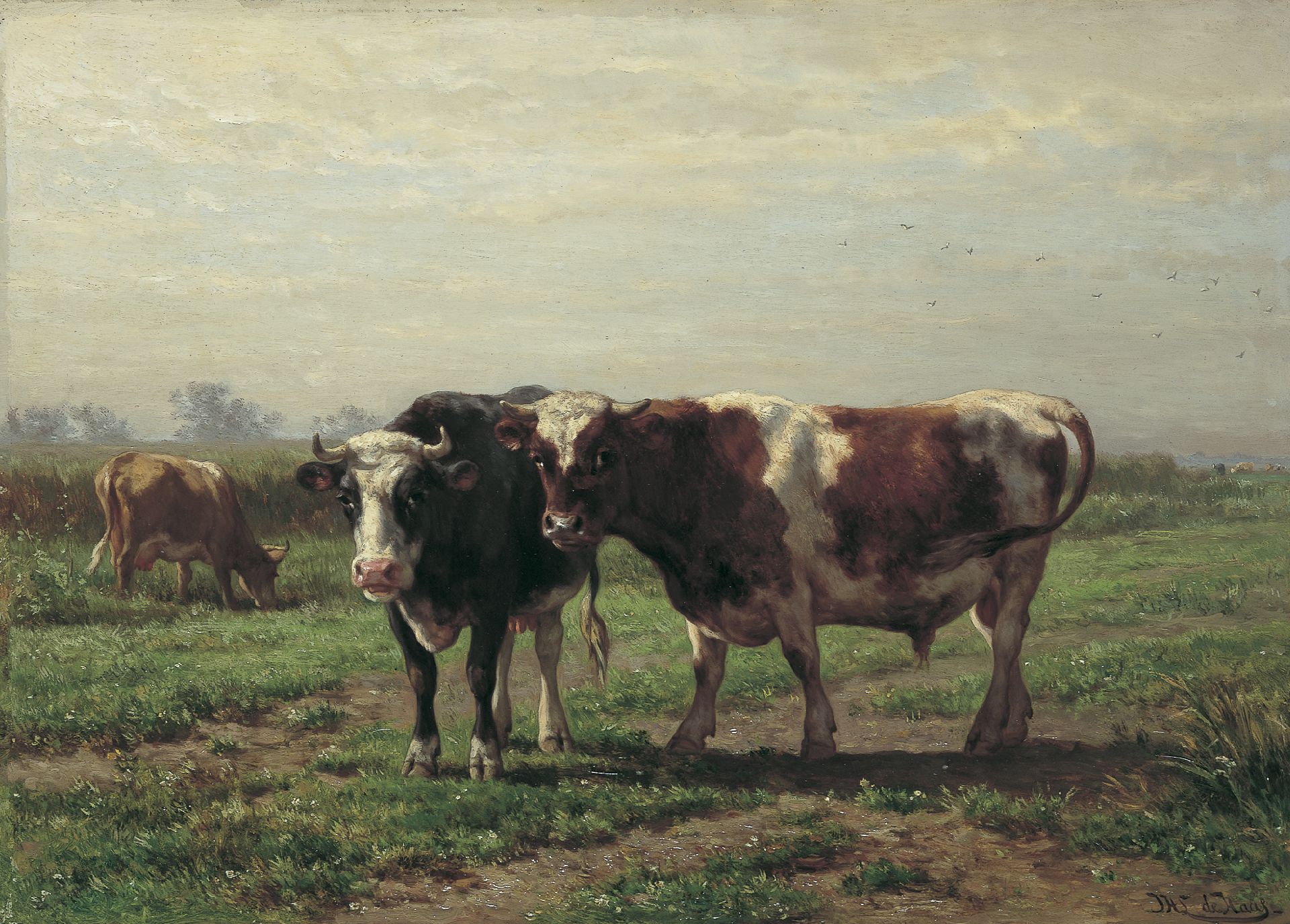 Jan de Haas kunstwerk • schilderij • voorheen te koop Zwart-en roodbont vee in een wei