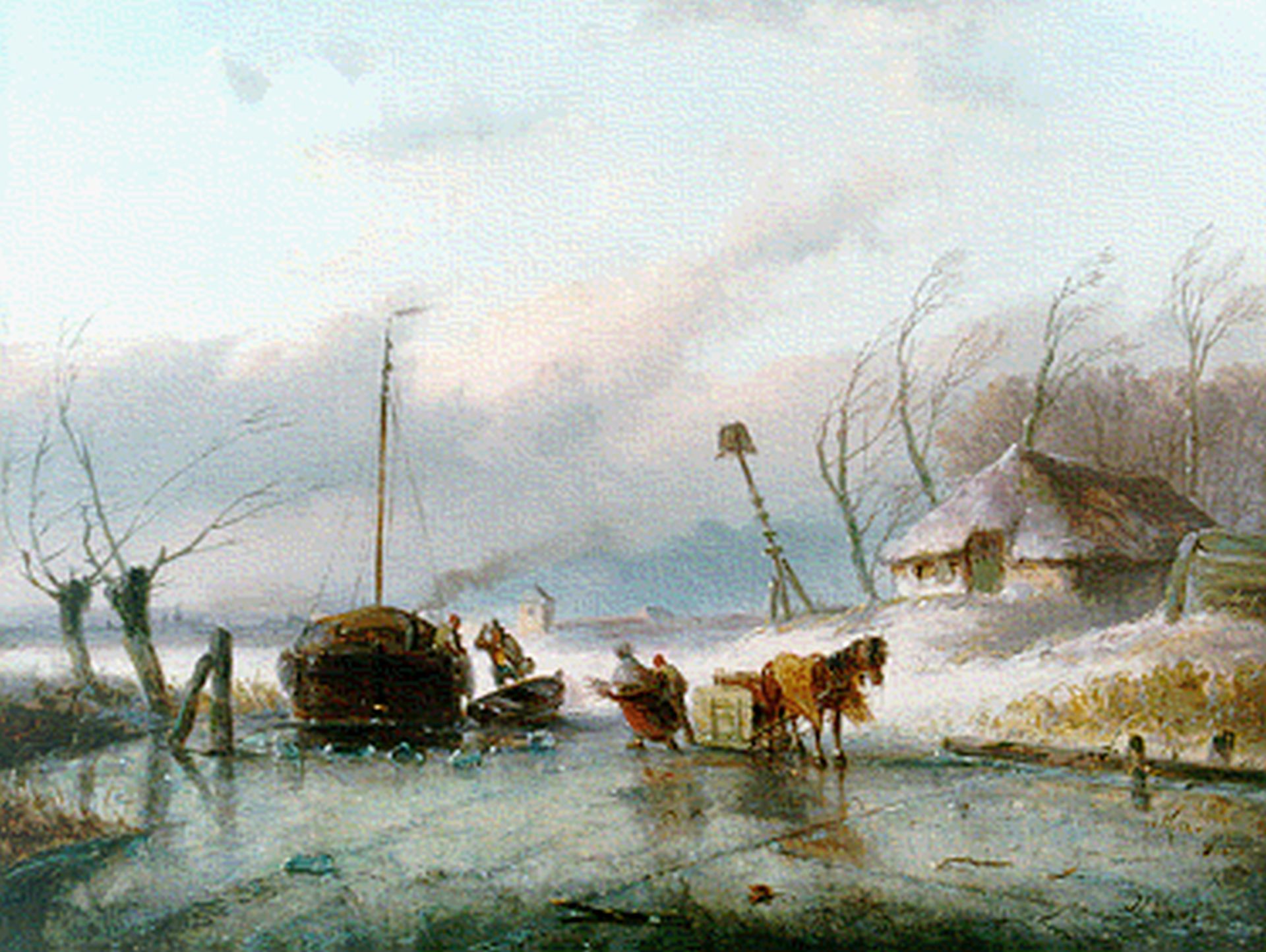 Jan Evert Morel II kunstwerk • schilderij • voorheen te koop Bevroren vaart