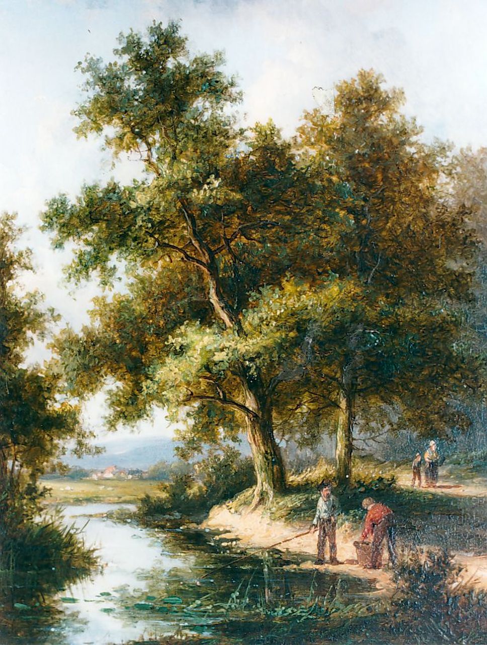 Jan Evert Morel II kunstwerk • schilderij • voorheen te koop Figuren bij beekje langs de bosrand