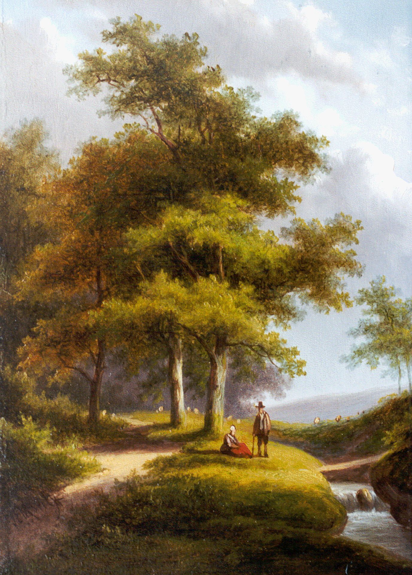 Jan Evert Morel II kunstwerk • schilderij • voorheen te koop Rustend landvolk bij een beek