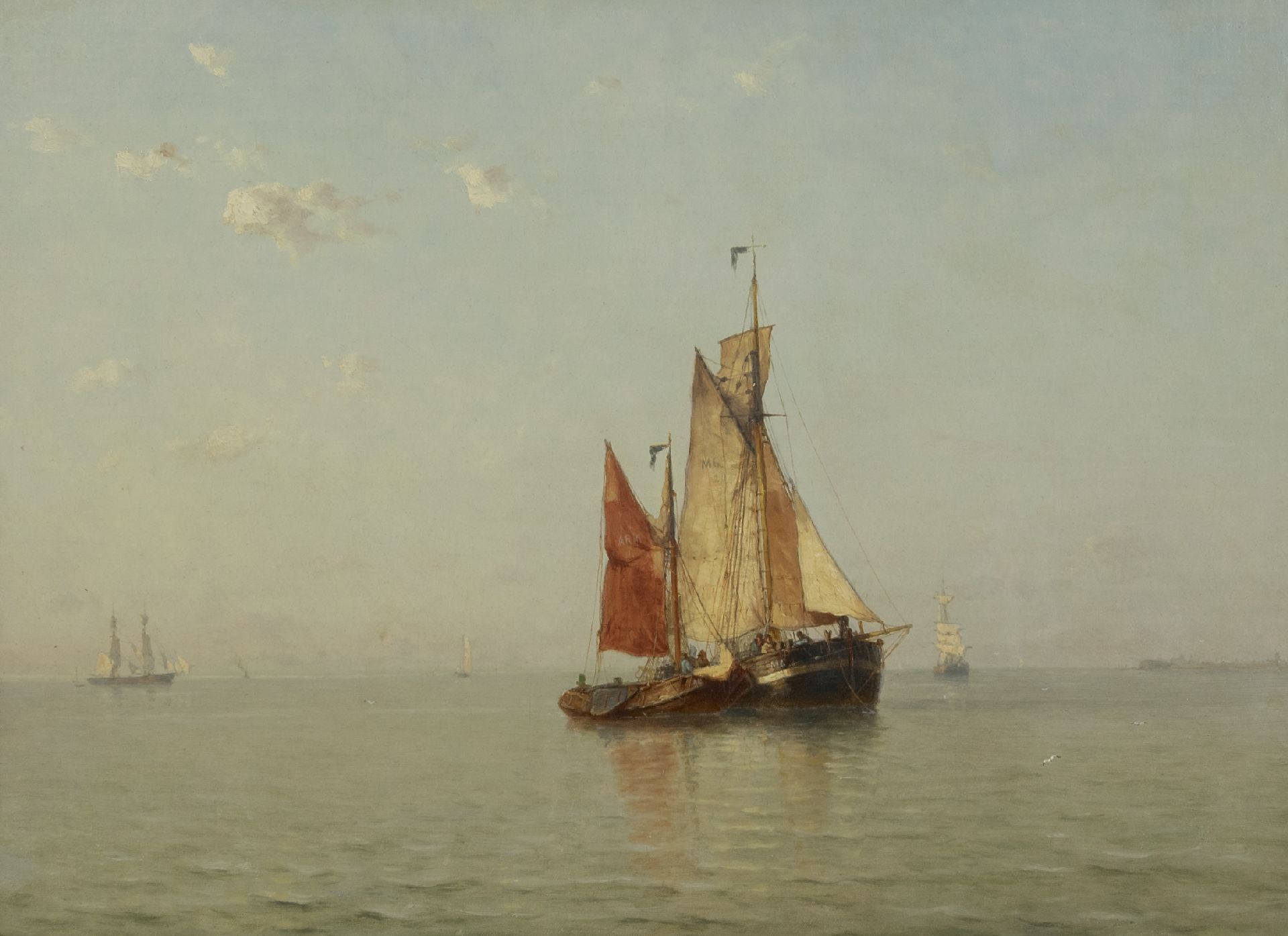 Jan Frederik Schütz kunstwerk • schilderij • voorheen te koop Zeilschepen voor anker op rustig water, Zeeland
